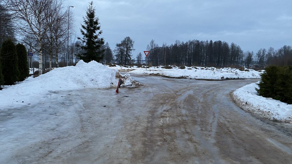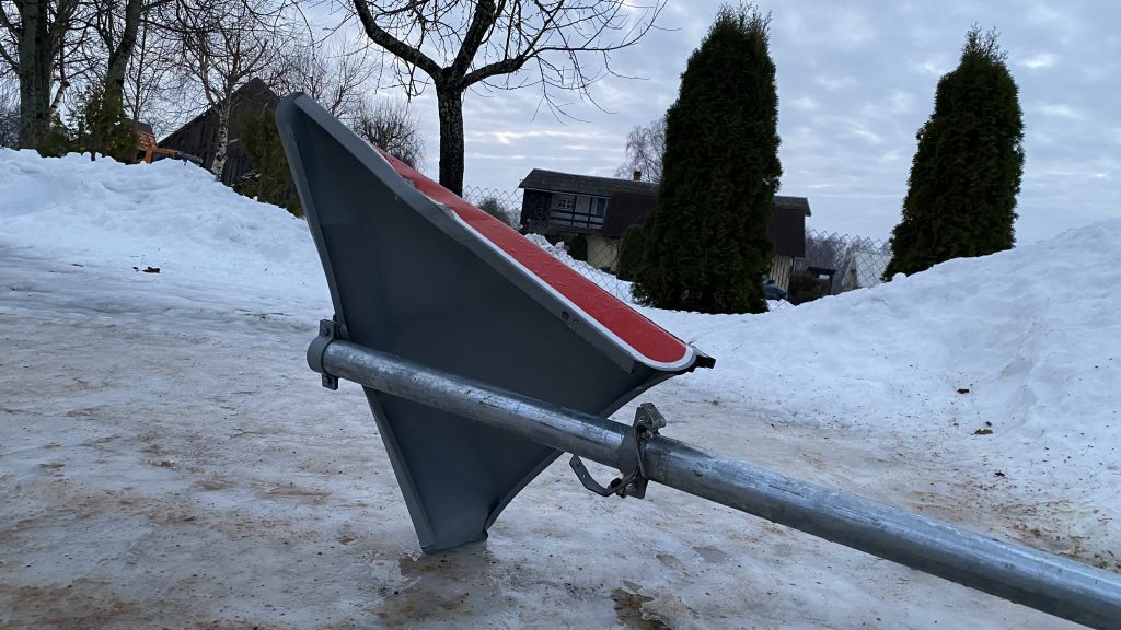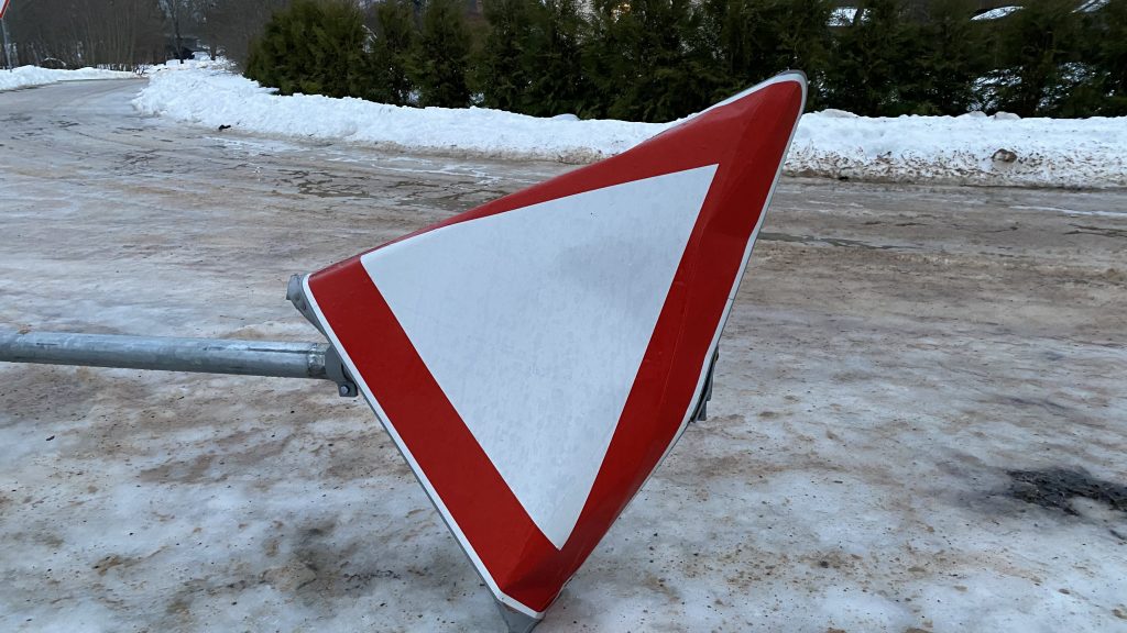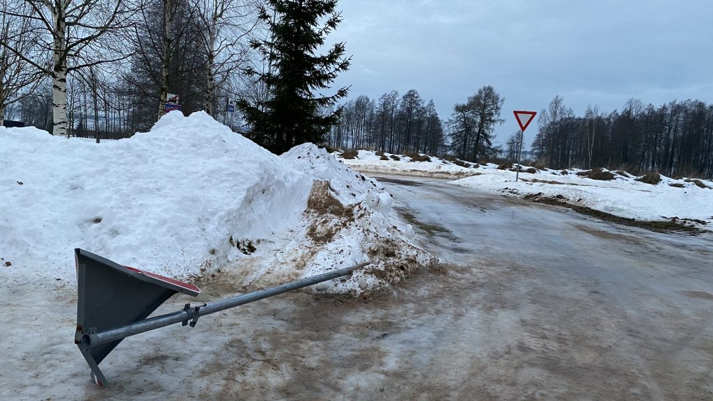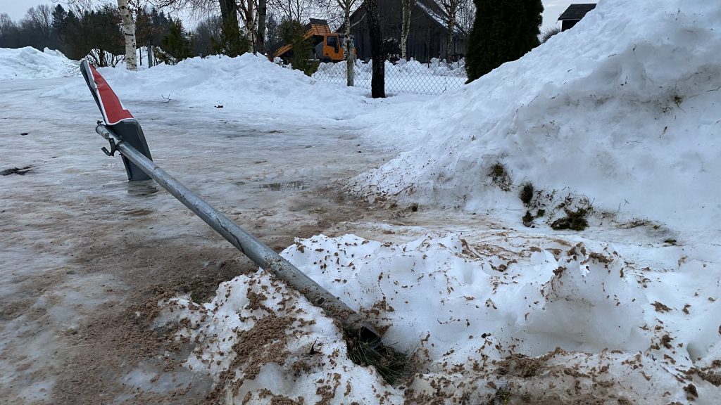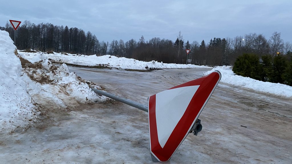 Kolberģī, Ezermalas ielā, ceļa apstrādes laikā ceļu uzturēšanas tehnika krustojumā sabojāja ceļa zīmi. Vietējie iedzīvotāji izsaka bažas, kad sabojāto ceļa zīmi atjaunos.