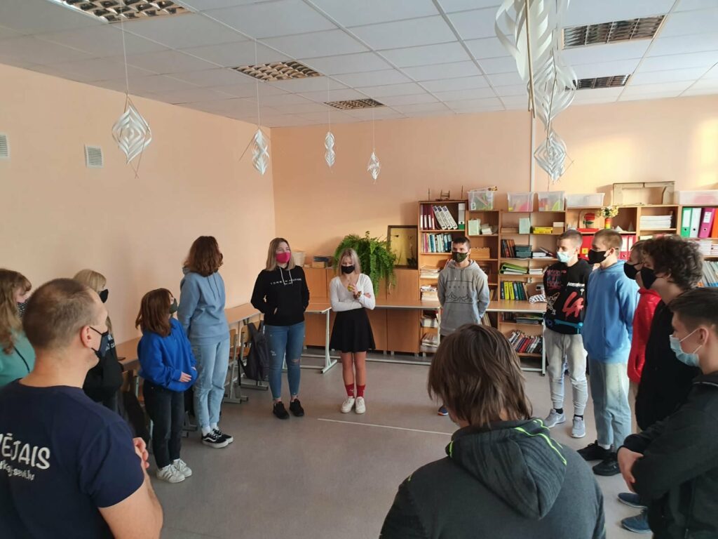 “Sākās mūsu plāna īstenošana: Veicām aptaujas skolā par skolēnu mentālās veselības stāvokli, par to, kā pandēmija ietekmējusi skolēnu pašsajūtu, kas mainījies, vai skolēni skolā jūtas apsmieti, atstumti. Analizējām datus un veicām projekta realizēšanu. Par projekta iecerēm tika informēti arī skolēnu vecāki. Dažas nianses mūsu plānu realizēšanā patraucēja epidemioloģiskā situācija valstī, attālinātās mācības, taču neatlaidīgi virzījāmies uz izvirzīto mērķi. Notika kopīgas lekcijas ar skolas psiholoģi, neformālās izglītības pārstāvjiem, ar kuriem notika saliedēšanās, sadraudzības aktivitātes, komandas darba spēles, mobinga mazināšanai, sadarbības veicināšanai. Veidojām iedvesmas stāstu pasākumus, kas notika gan no vecāku, gan skolotāju, gan interneta resursu pieejamiem video, kopīgi tapa “stāstu kaste,” kurā rakstījām un ievietojām skolēnu pašu piedzīvotās mobinga radītās situācijas, atgadījumus, analizējām tos, viedokļi gan dalījās, gan bija pilnīgi vienādi. Jaunums bija “Komplimentu dienas,” kurās katram bija iespēja pateikt labu vārdu gan saviem klasesbiedriem, gan skolotājiem, gan skolas darbiniekiem, šo aktivitāti skolēni ļoti uzslavēja kā abu esam. Pašpārvaldes komanda izveidoja darba grupu un veica maketu izveidi. Zīmēja, veidoja ar datoru, izvēlējās ieteikumus, kurus vēlas uz tiem redzēt, lai, izlasot tos, gribētos kļūt labākam, mazināt mobingu skolā, kļūt draudzīgākiem, laipnākiem vienam pret otru,” informē projekta koordinatore – skolotāja Dagnija Pakalne.