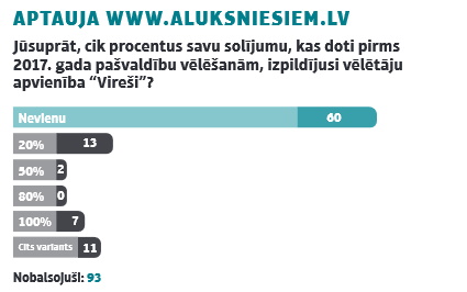 Viņasprāt, vēlētāju apvienība “Vireši” paveikusi 70 % no