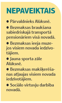 Vai novadā netiek aizmirsti pagasti, lielākoties ieguldot pilsētā? “Nē, arī pagastos novads veic ieguldījumus infrastruktūrā, bet, jā, pārsvarā akcentu liek uz Alūksni. Ja pilsēta būs stipra, tad arī pagasti būs stipri, un otrādi. Mēs atbalstām šīs domes vadību, jo tā spēj izsvērt finansējuma sadali pilsētai un pagastiem.