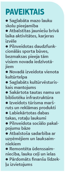 Astrīda Harju: – Prioritāte bijusi lielie infrastruktūras objekti – ielas, ceļi, ūdensvadi, izglītības iestādes, sporta bāzes. Tās ir lietas, kas īpaši nepieciešamas, lai cilvēki šeit dzīvotu un strādātu. Savulaik plānojām muzeju veidot pie tautas nama, kur jau atjaunojām ēkas jumtu un tapa meti. Ņemot vērā finanšu iespējas nākotnē un lietderību, ir redzējums muzeju veidot E. Zālītes memoriālajā mājā. Muzeja būtība laika gaitā ir mainījusies. Ekspozīcijai jābūt mainīgai, ar virtuālo ceļojumu jeb piedāvājumu. Ceram līdz novadu apvienošanai ekspozīciju iekārtot.