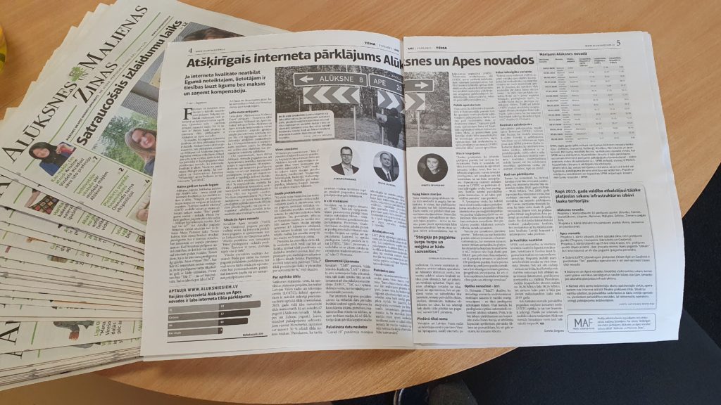 Ir skaidrs, ka pagastos interneta kvalitāte un datu pārraides ātrums ir dažāds. Alūksnē iedzīvotāji ir apmierināti, bet, piemēram, dodoties uz Mālupes vai Malienas pagastu, iegriežos vietējos veikaliņos, jo kurš gan cits, ja ne vietējie, zinās teikt, kā tas patiesībā ir. Šajos pagastos visas pārdevējas norāda, ka interneta kvalitāte ir slikta. Viena no pārdevējām Mālupē pat atklāj – lai sazinātos ar kaimiņieni lietotnē “WhatsApp”, iet uz balkona, jo tad internetu “ķer labāk”.