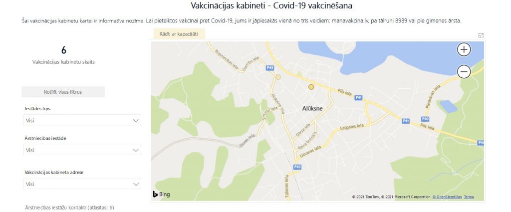Atgādinām, ka tīmeklī, sekojot saitei “ej.uz/vakc-karte”, ir karte, kurā var atrast ģimenes ārstu prakses, kurās vakcinēs pret “Covid-19”. Kopš pirmdienas tā ir papildināta ar vēl dažām ģimenes ārstu prakšu adresēm mūsu novados: Aritas Prindules, Rūtas Vanagas, Zitas Prazņicānes. Kā norādīja S. Gulbe – ja savu ģimenes ārstu neredzat kartē, nav pamata uztraukuma, jo karti arvien papildina.