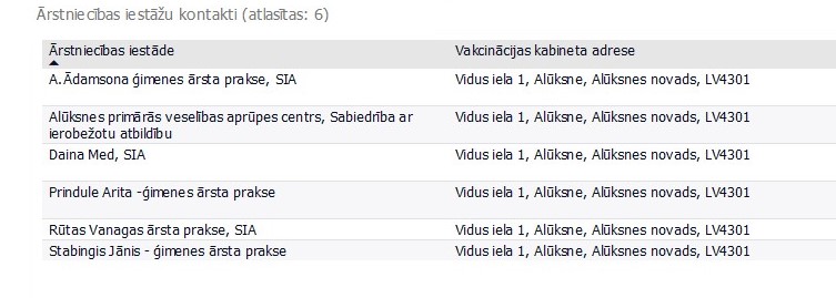 Tāpat saņēmām zvanu no ģimenes ārstes Dainas Ozolas, kura gribēja precizēt, ka publikācijā pieminētajā kartē SIA “Daina Med” prakse Alūksnē ir viņas, lai pacientiem neradītu neskaidrības.