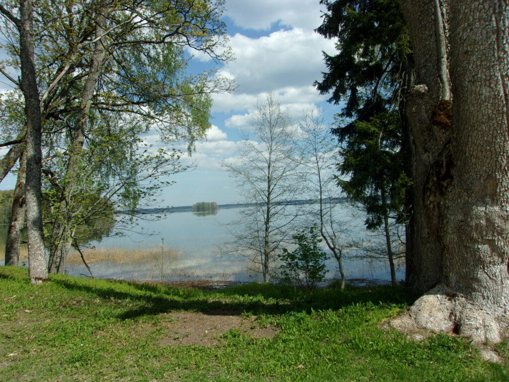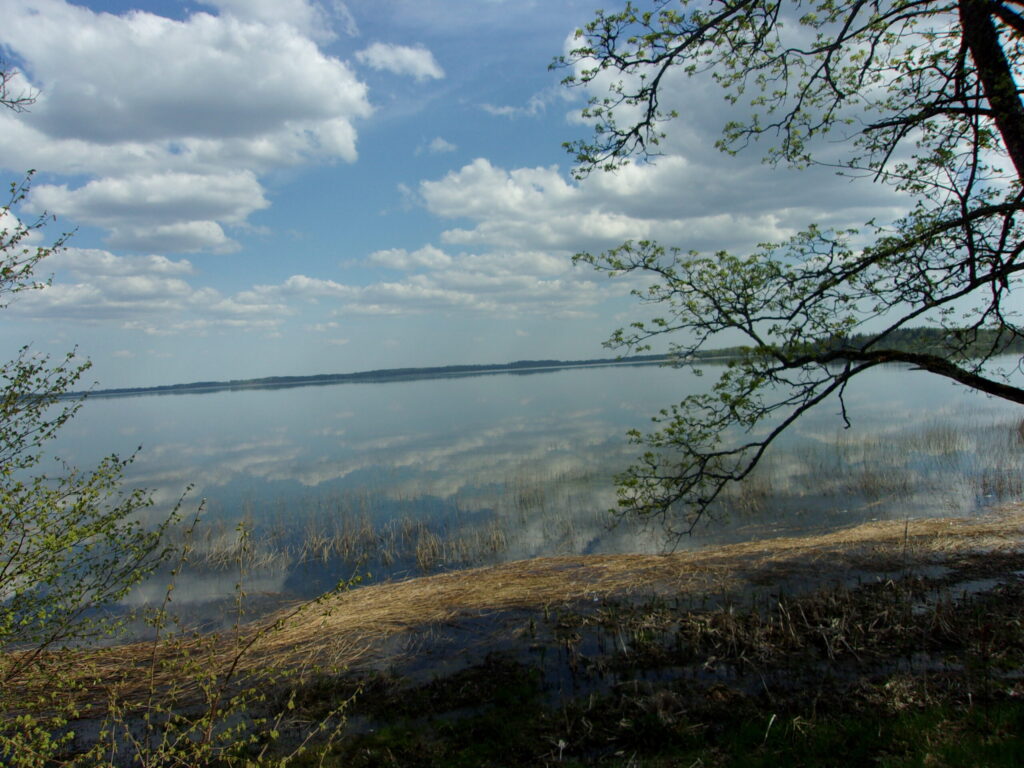 “Spīguļo ezers pie pussalas pakājes,