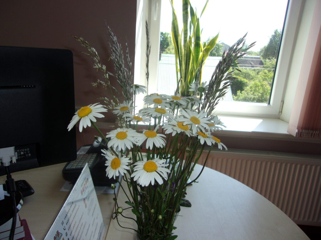 Izstādei kā parasti vietu atvēlējusi lasītava, precīzāk – tā skatāma priekštelpā, bet, atverot durvis uz plašo lasītavu, vispirms acis priecē Līgo vakara priekšvēstneses pīpenes vāzē.