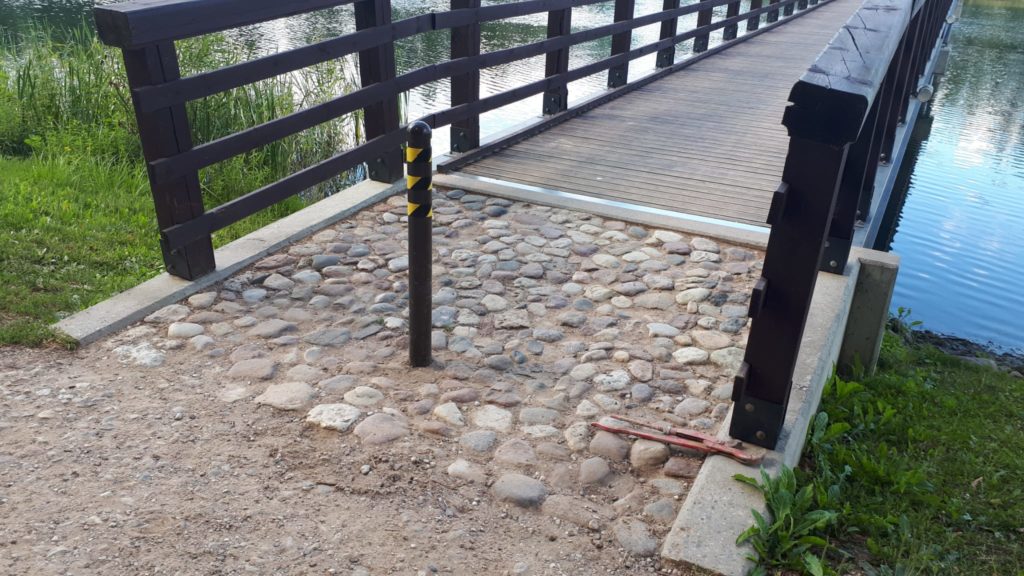 Pirms apmēram gada Alūksnes Pilssalā – gan pirms, gan aiz Gājēju tilta – Alūksnes novada pašvaldība izvietoja metāliskus stabus, lai ierobežotu kustību pār tiltu. Līdz šim alūksnieši – kājāmgājēji, riteņbraucēji, pieaugušie un bērni – tāpat arī pilsētas viesi tos “apgāja”.