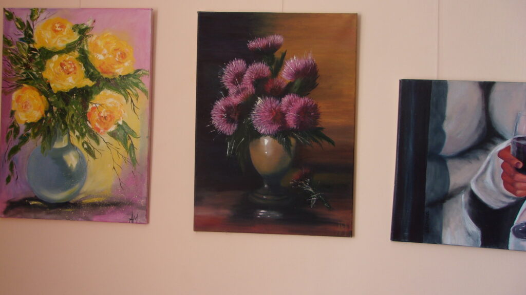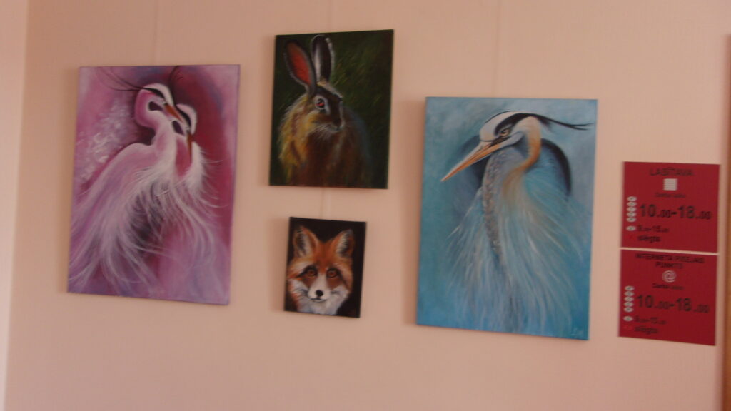 Arī es 7. martā iegriezos bibliotēkas lasītavā, kur šajā mēnesī ciklā “Alūksniešu vaļasprieki” skatītāju vērtējumam nodota alūksnietes Aigas Mūrnieces gleznu izstāde.