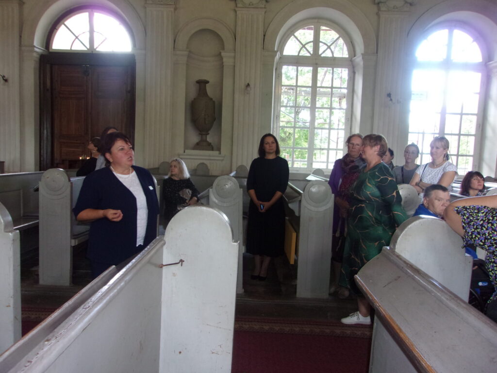 Arī te iemītniekiem bija ko redzēt. Varēja iedegt svecītes un palūgties par sev mīļajiem cilvēkiem. Te satikām arī draudzes locekli un diakoni Māru Kalnu, kura labprāt aprunājās ar iemītniekiem. Vēlāk piebiedrojās cita grupa, kuru vadīja gide Ilona Riekstiņa, kura klātesošajiem deva interesantu ieskatu par baznīcas pirmsākumiem un tālāko vēsturi līdz mūsdienām. (attēlā) Protams, ka dzirdējām arī ērģeļu mūziku un tās spēlēja alūksniete- draudzes ērģelniece Agrita Kalniņa. Arī par to mēs varam būt lepni, ka mums ir senas ērģeles un profesionāla ērģelniece.