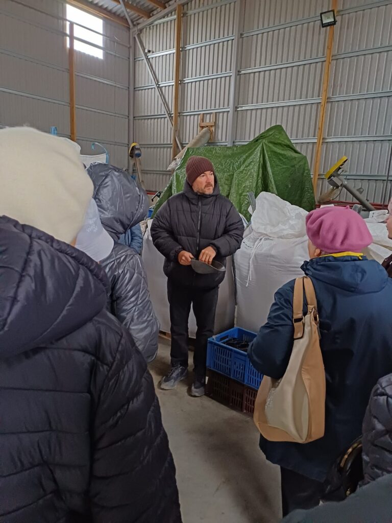 Sākām ar bioloģisko saimniecību “Griķu rezidence”, kas atrodas Ilzeskalna pagastā, aptuveni 15 kilometru attālumā no Rēzeknes. Mūs patīkami pārsteidza laipnā un sirsnīgā uzņemšana. Bioloģiskajai saimniecībai pieder 250 hektāri zemes, kur tiek audzēti kvieši, rudzi, auzas, zirņi, bet īpaša uzmanība tiek pievērsta griķu audzēšanai. Daļa no izaudzētās produkcijas tiek pārstrādāta uz vietas līdz gatavai gala produkcijai.