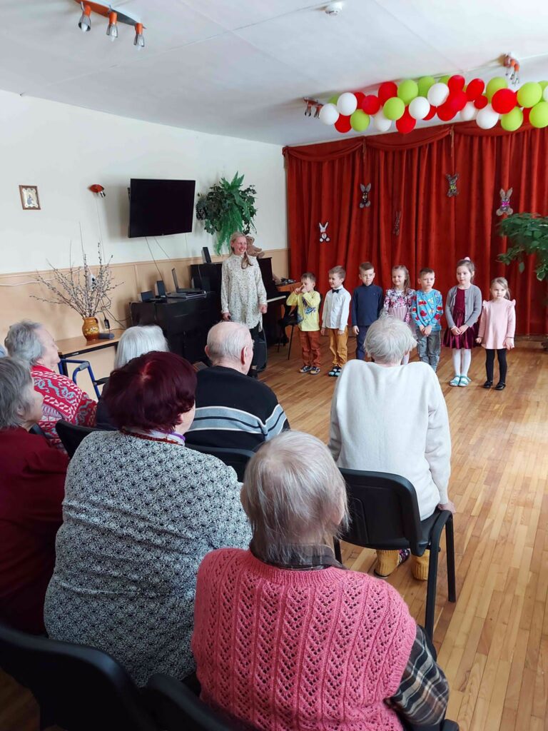 SAC “Alūksne” iemītniekus šodien sirsnīgi priecēja Lieldienu svētku jaukais koncerts, kuru vecmāmiņām un vectētiņiem sniedza Alūksnes pilsētas mazie septiņi sprīdīši un muzikālā audzinātāja . Koncerta laikā visi kopīgi atcerējās savu bērnību, ģimenes un bērnības dienu jaukās gaitas un mīļumu.Paldies sprīdīšiem par svētku koncertu!