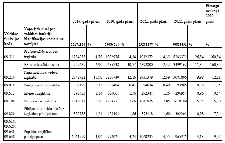 Lielāko ziņojuma daļu aizņem izglītības nozares finansiālo aspektu izvērtējums. Ņemot vērā izlietoto finansējumu izglītības nozarē (35. lpp.), netiek atšifrētas pozīcijas, kuras rada patieso tēriņu pieaugumu. Saviem aprēķiniem nevarējām izmantot izmaksas uz vienu izglītojamo, jo publiski nav pieejami dati par ēdināšanas pakalpojumu izmaksām atsevišķās iestādēs, kā arī nav zināms skolēnu skaits pa vecuma posmiem izglītības iestādēs. Izmantojot pašvaldības saistošos noteikumus12 par pašvaldības budžeta plānu attiecīgajos gados un veicot aprēķinus, lai redzētu, kur radies izglītības īpatsvara pieaugums budžetā, redzam, ka laika posmā no 2019. gada lielākais pieaugums ir profesionālās ievirzes izglītībai, kas 2022. gada plānā sastāda 26,84 % un pieaugums ir 560,54 % (22,05 procentpunkti). Šajā pozīcijā 23,64 % sastāda “Izglītības un sporta centra izveide”13. Otrs ievērojamais pieaugums ir ES projektu īstenošanas sadaļā zem pamatizglītības, vidējās izglītības valdības funkciju koda – 360,85 % (8,44 % procentpunkts). Šī pozīcija 2022. gada budžetā sastāda 11,34 % un no tās lielāko daļu jeb 10,65 % no gada budžeta sastāda “ESF projekts “Uzlabot vispārējās izglītības iestāžu mācību vidi” (Ernsta Glika Alūsknes Valsts ģimnāzija)”. Vēl pieaugums vērojams pamatizglītības, vidējās izglītības pozīcijā, neieskaitot ES projektu īstenošanu, gada budžetā tas sastāda 9,98 % (0,52 procentpunktu samazinājums), 2020. un 2021. gada budžetos ap 11 %. Šeit lielākais budžeta īpatsvars ir pilsētas skolām, kas skaidrojams ar lielāku skolēnu skaitu: Alūksnes pilsētas sākumskola, Alūksnes novada vidusskola, Ernsta Glika Alūksnes Valsts ģimnāzija, bet lielākais pieaugums 0,42 procentpunktu apmērā, sastādot 0,42 % 2022. gada budžeta ir jauna pozīcija “Pašvaldības investīciju projekti”, kas ir aptuveni vienas skolas gada budžeta vērtībā. Viena skolēna izmaksu aprēķinos netiek ņemtas vērā tā patiesās izmaksas ēku uzturēšanā, ēdināšanā, atalgojumam personālam, piemēram, atsevišķām izglītības iestādēm ieskaitot un citām neieskaitot pirmsskolas izglītības budžetu un izglītojamos, papildus projektu ieguldījumus un citām iestādēm – pirmšķietami ieskaitot. No ziņojumā minētā pieauguma, patiesībā vērojams, ka pieaugums nav ne uz obligātās pamatizglītības rēķina, bet vidējās izglītības posma ēku uzturēšanas un uzlabošanas un sporta centra būvēšanas rēķina, kas ir privilēģija. Nav pārliecība, ka šādu aprēķinu veikšana, kāda bijusi šajā ziņojumā, ir ētiska un vienlīdzību veicinoša.
