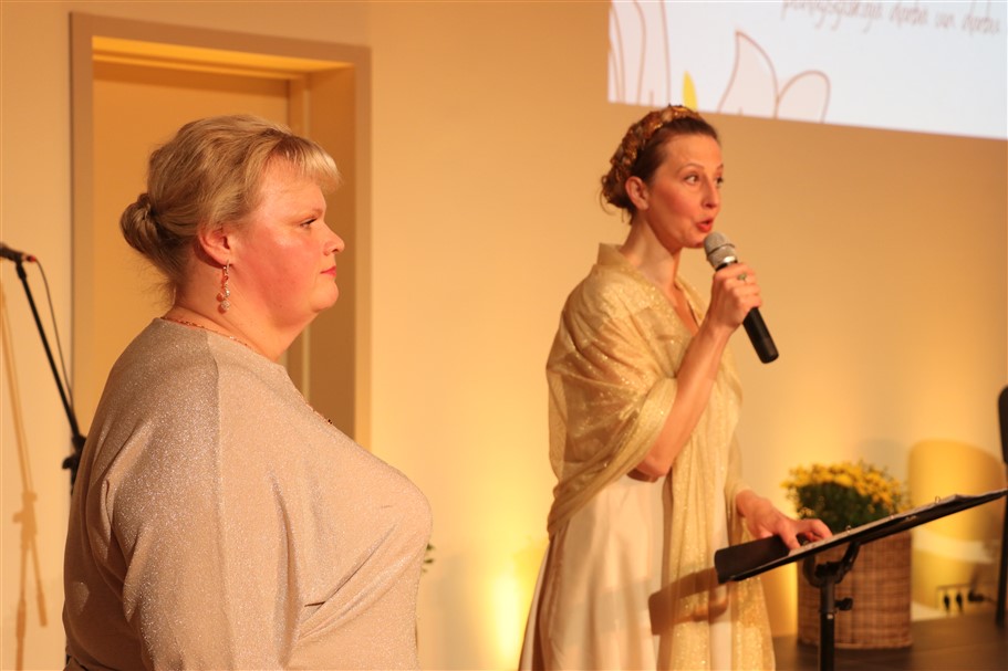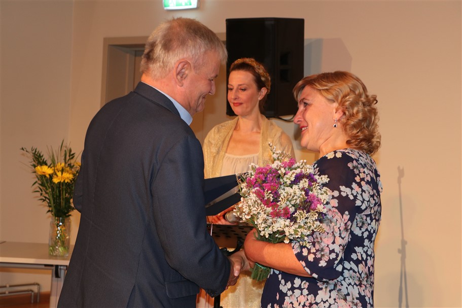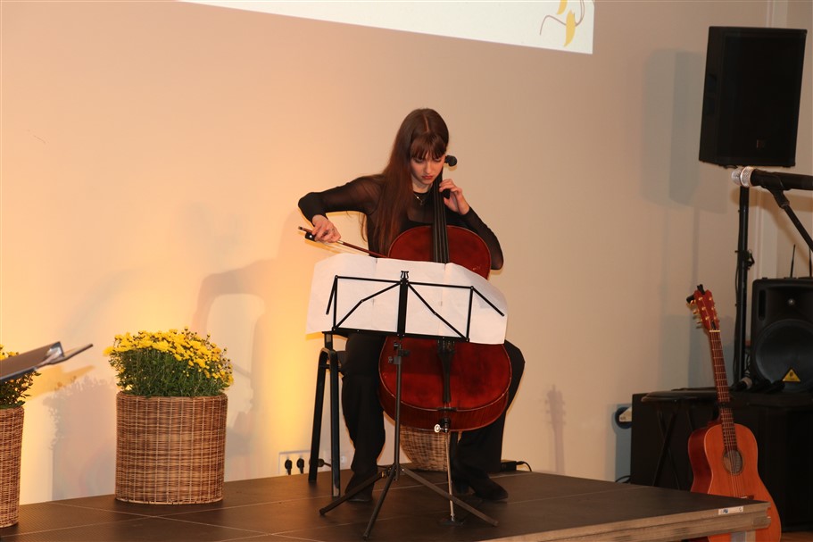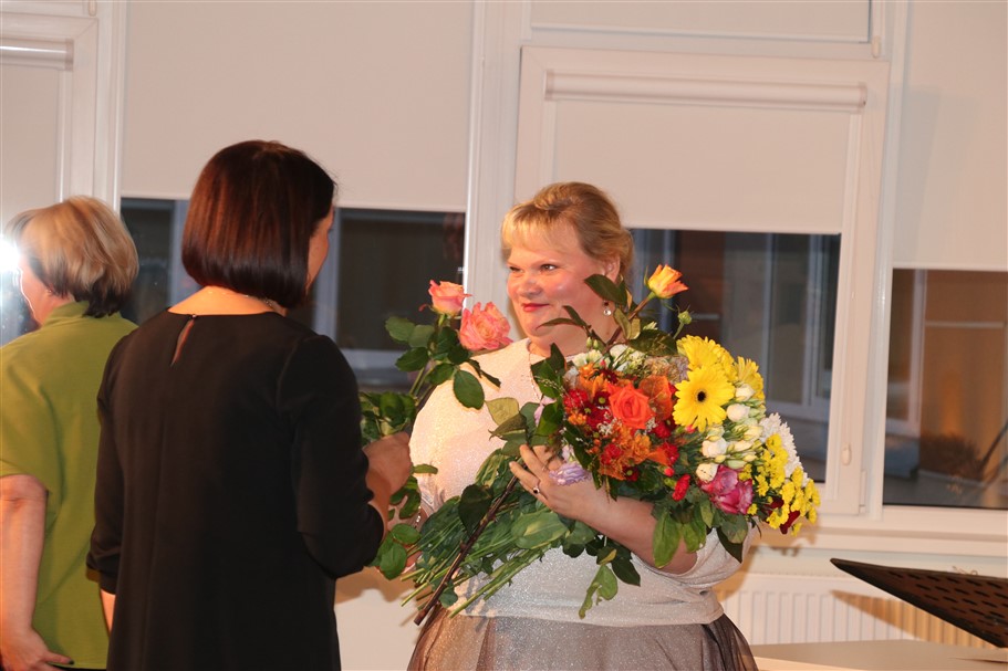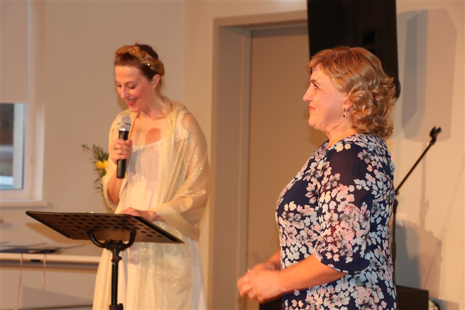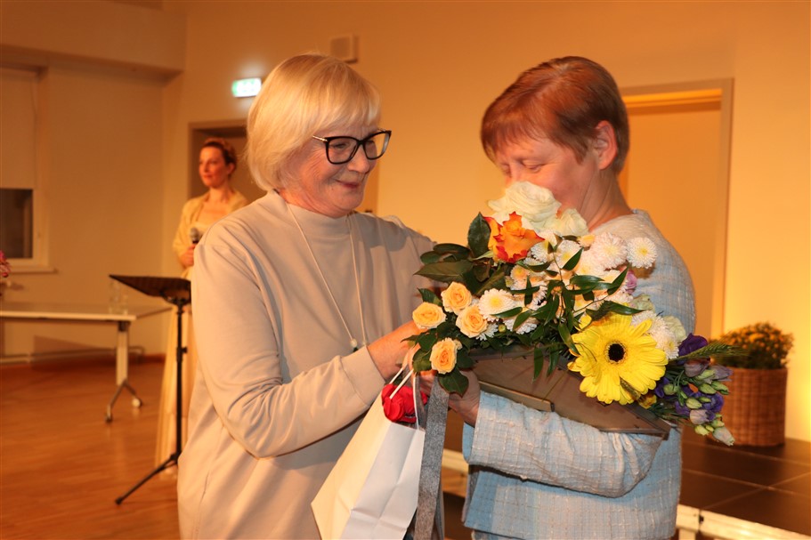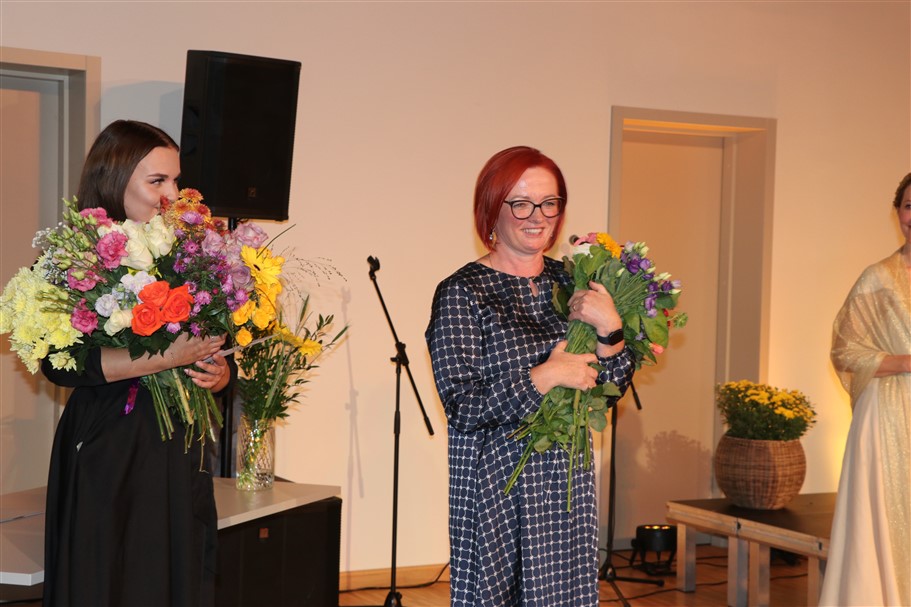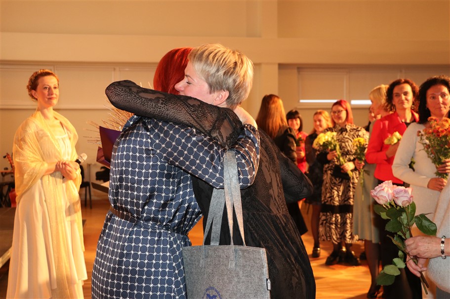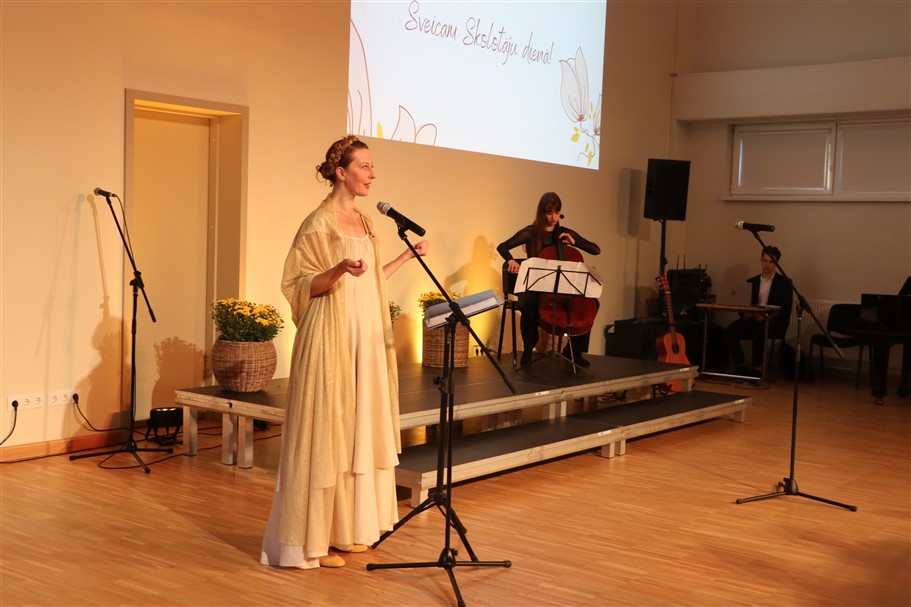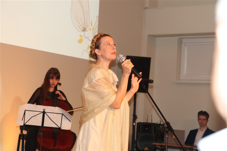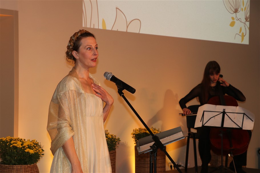 Svētku noskaņu kuplināja jaunā čelliste Marta Marija Silāre un aktiera Arta Robežnieka koncertprogramma “Sieviete un mīlestība dzejā un dziesmās”.