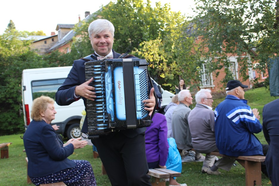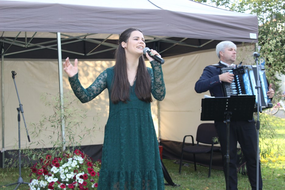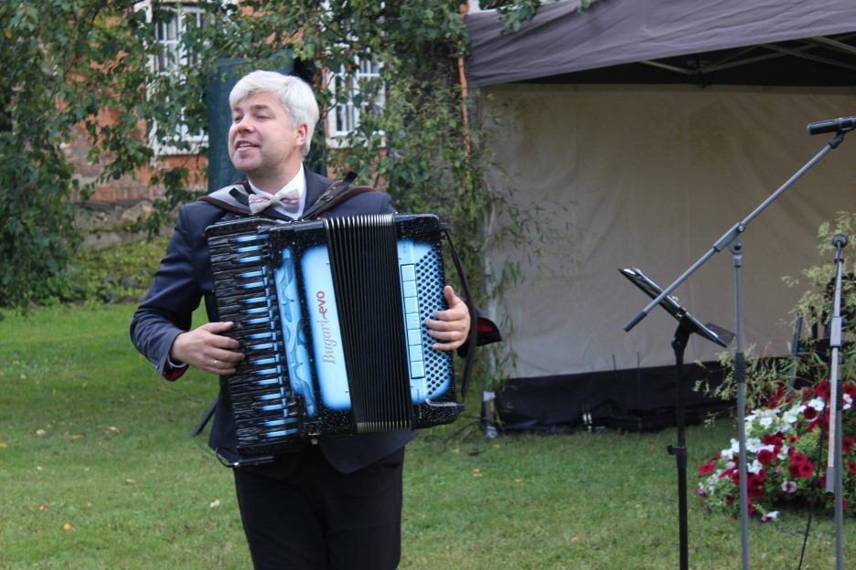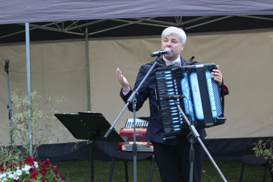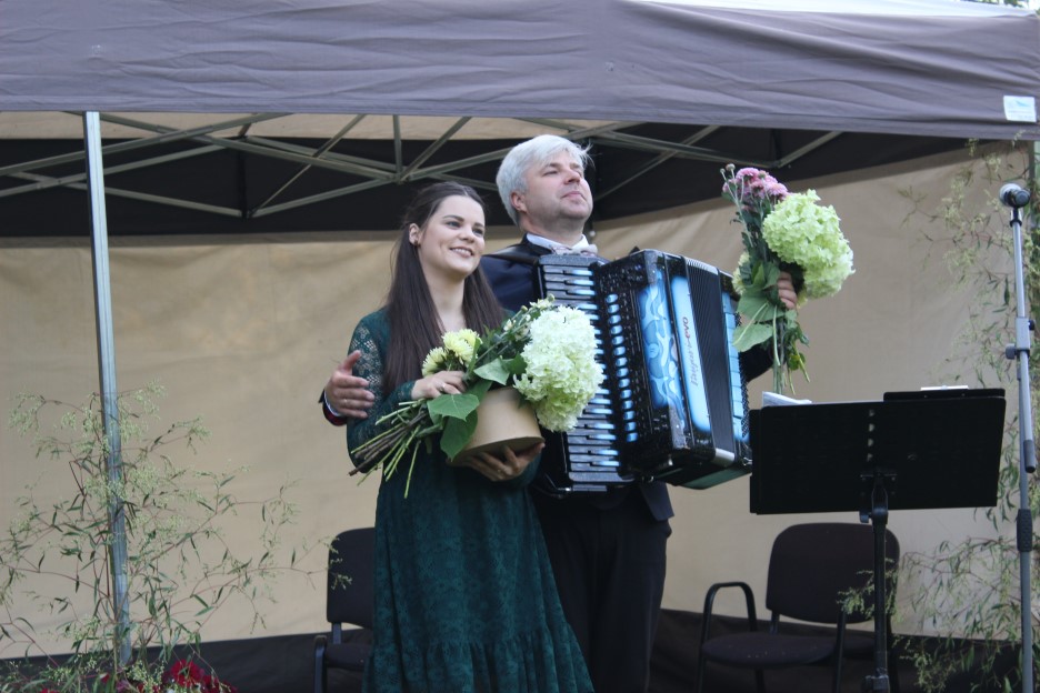 Gulbe un akordeonists Kaspars Gulbis, atskaņojot dziesmas, kas saistītas