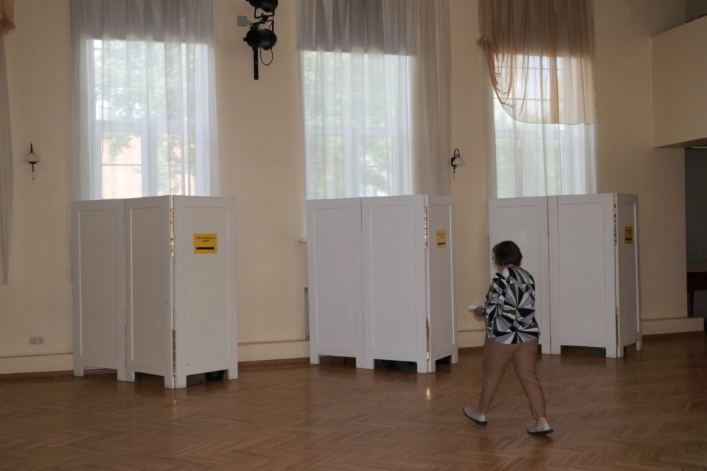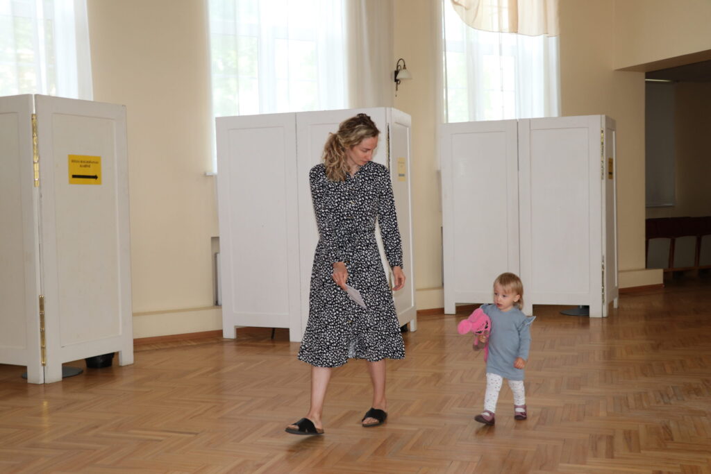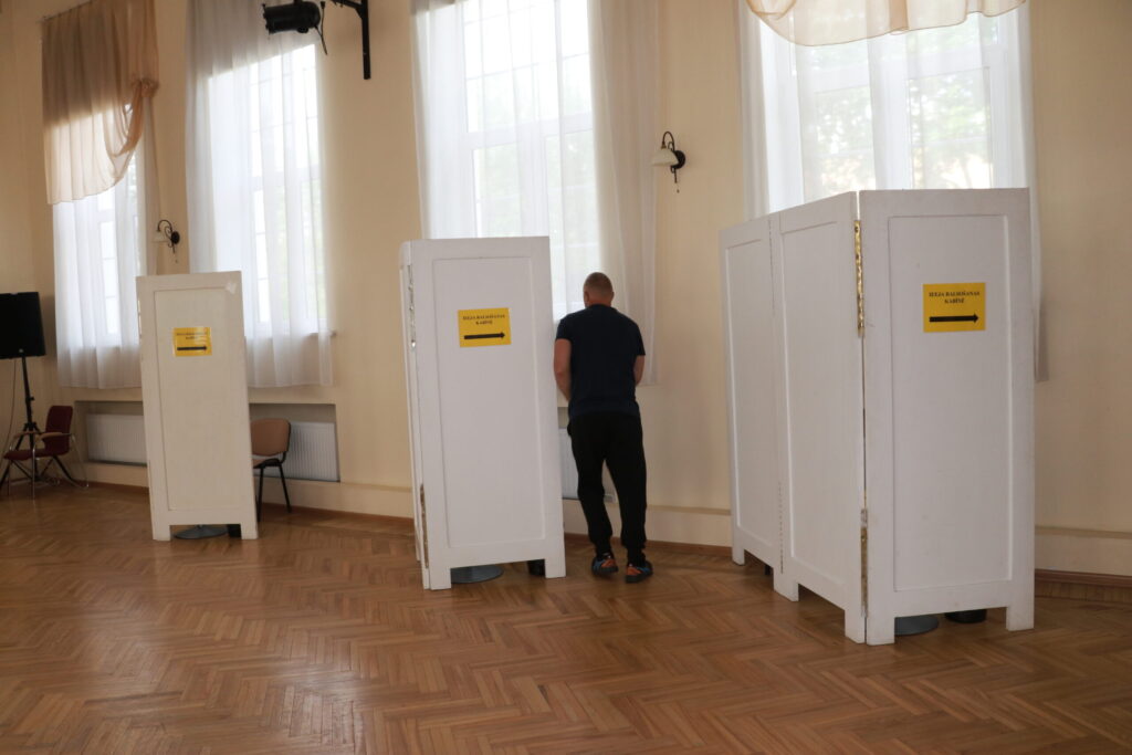 Foto: Alsviķu vēlēšanu iecirknī balso kūtrāk: traucē ceļa remonts