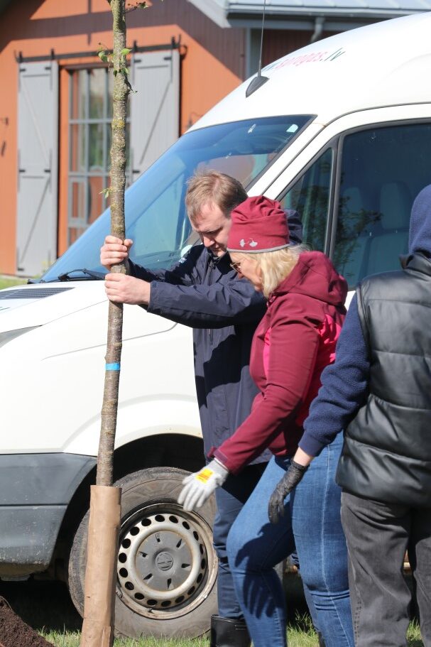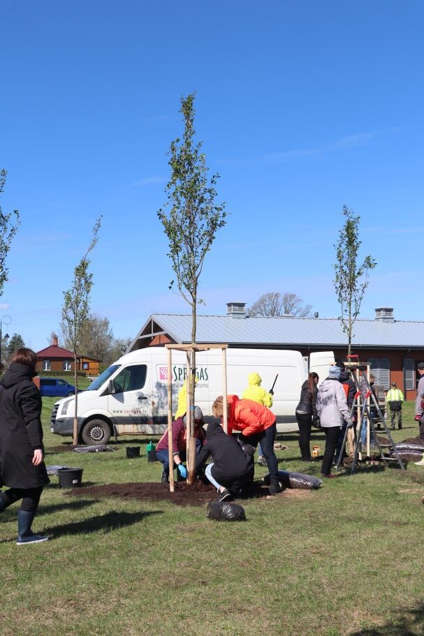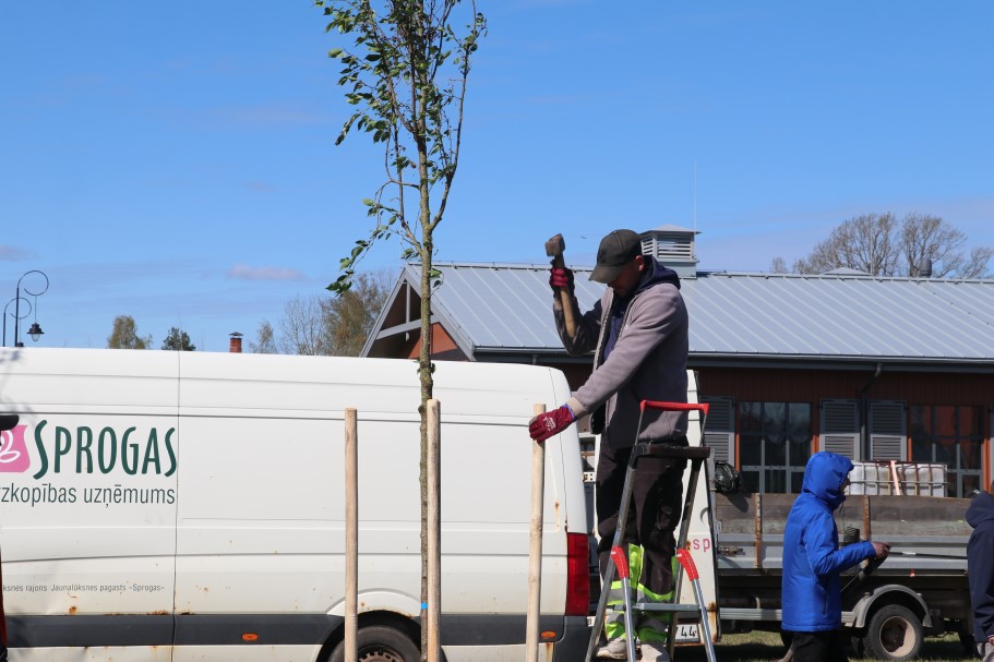 SIA “Alūksnes putnu ferma” Alūksnei dāvina 26 sakuras jeb Japānas ķiršus. “Manuprāt, šajā gadalaikā tieši sakuras zied visskaistāk, tāpēc izlēmām iepriecināt pilsētas iedzīvotājus un viesus. Par vietu, kur stādīt, domājām ilgi – gribējām, lai kociņi aug sakārtotā vidē, tāpēc šāda izvēle, Alūksnes Bānīša stacijas kvartāls,” stāsta uzņēmuma izpilddirektors Hermanis Dovgijs un novēl, lai skaisti un labi aug. Arī viņš pats šodien piedalās sakuru stādīšanā.