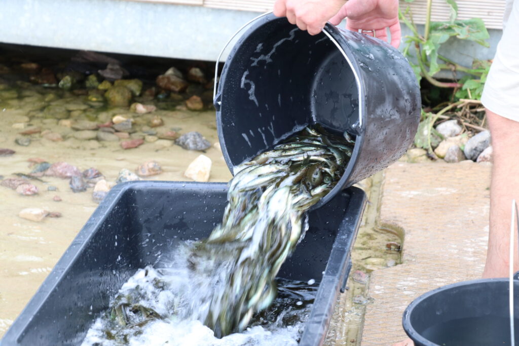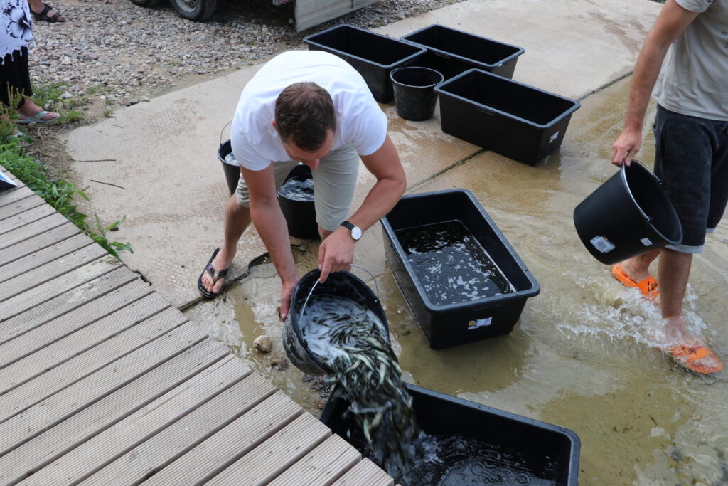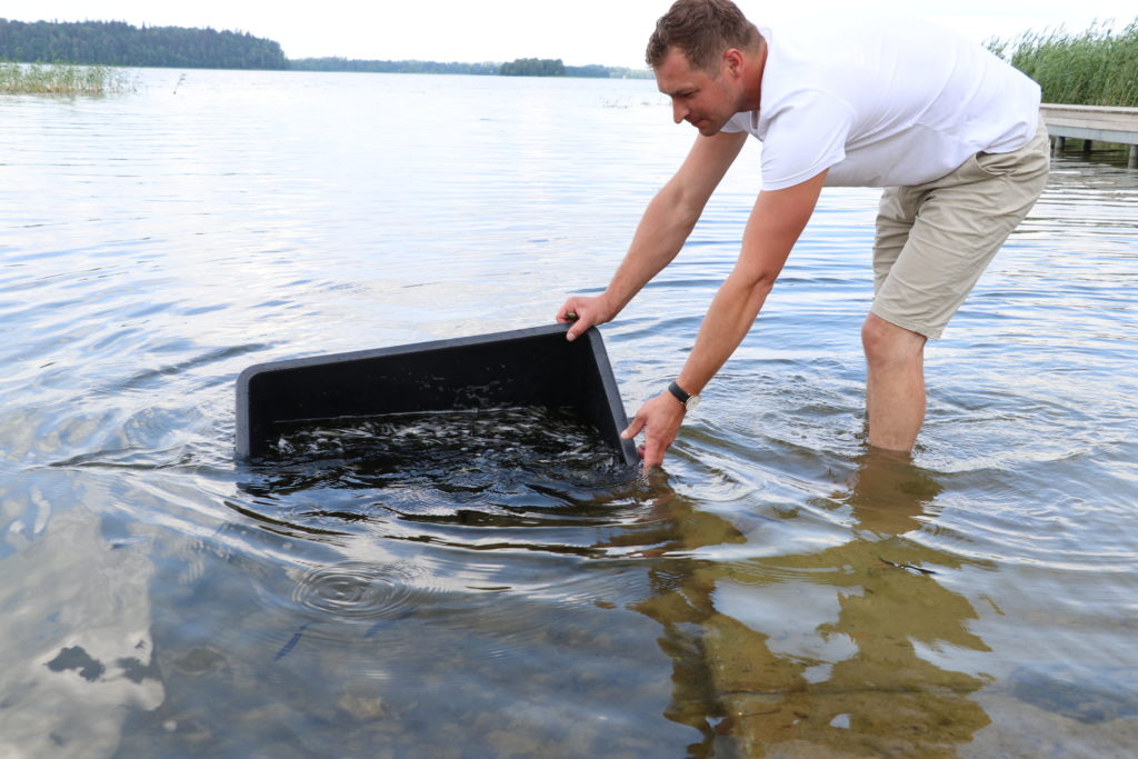 Aģentūras “Alja” direktors Māris Lietuvietis stāsta: “Šodien ielaida 36 000, rīt vedīs atlikušo daļu. Mazuļi vesti no “Rūjas” zivju audzētavas. Rītdien 5000 mazuļu tiks vesti arī uz Lukumieti un uz Vaidavas ezeru 2,400 mazuļu.