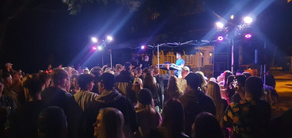Alūksnes pilsētas svētku otrā diena aizvadīta ar erudīcijas spēli “Es mīlu tevi Alūksne” pie kafejnīcas “Pajumte”, strūklaku šovu Alūksnes Pilssalā un ballītēm Alūksnes kafejnīcās ar daudzveidīgu izklaižu programmu.
