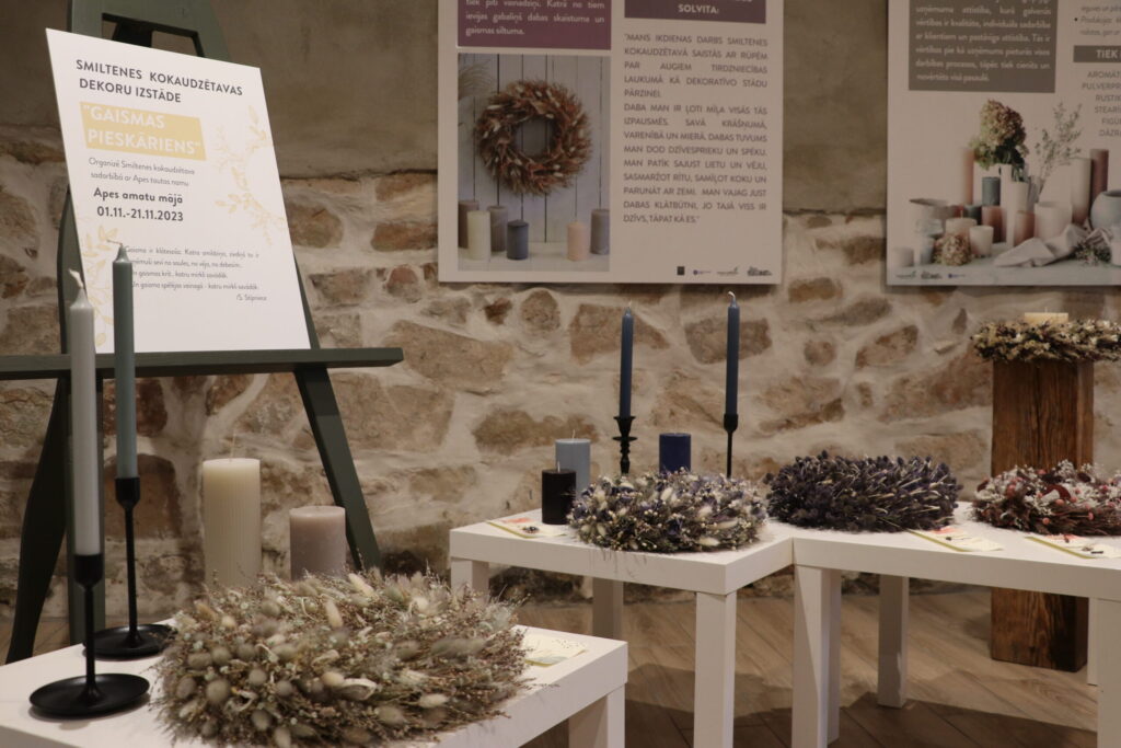 Smiltenes kokaudzētavas dekoru izstāde “Gaismas pieskāriens” šogad ir atradusi savu vietu Apes Amatu mājā un aicina ikvienu aplūkot dabas un cilvēka radīto skaistumu.