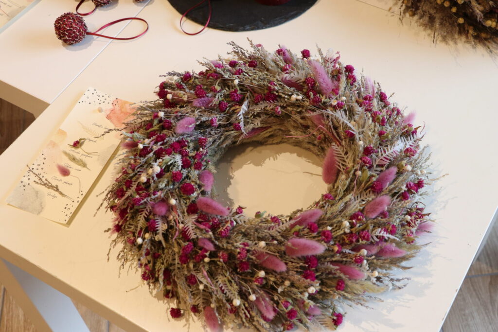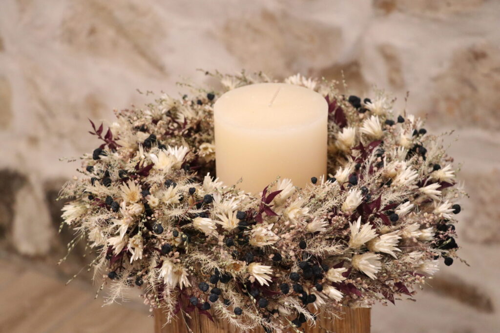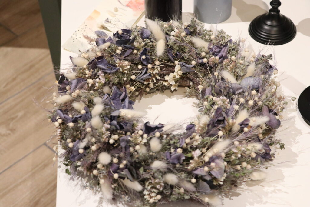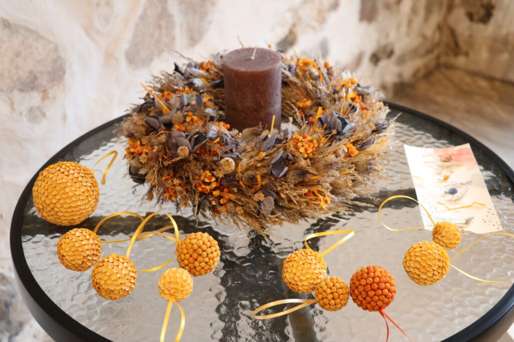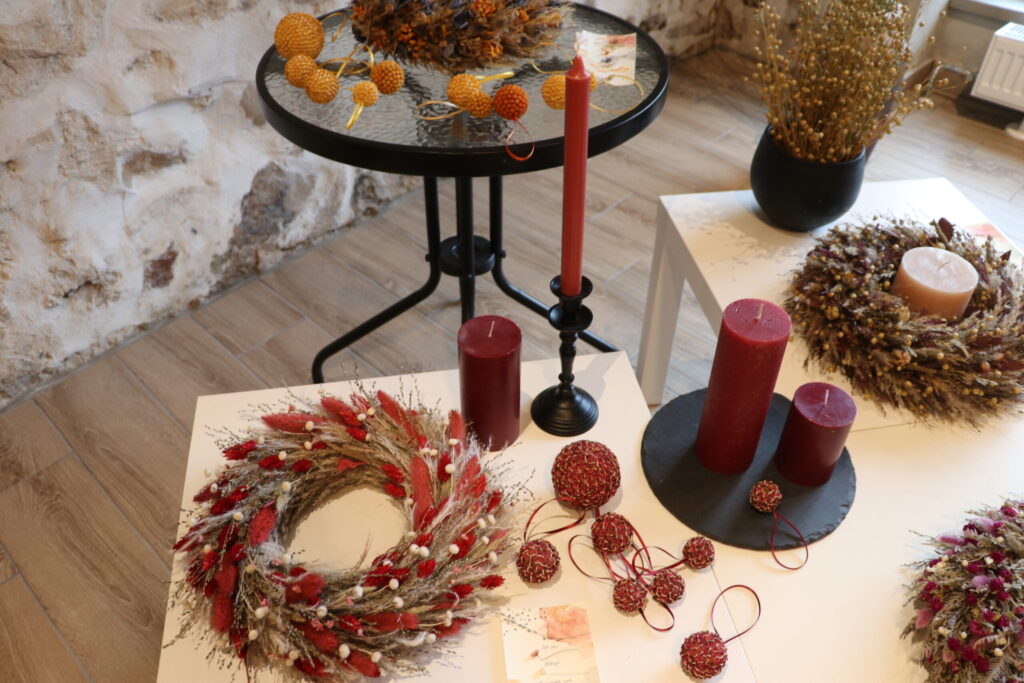 Smilgas, ziedi, odziņas, čiekuriņi – ikviens materiāls izraudzīts dabā, ievākts un apčubināts, vēlāk neskaitāmas reizes piemērīts, komplektēts ar kādu košumiņu, cenšoties atrast saskaņu un radīt īsto noskaņu. Tīrs roku darbs.