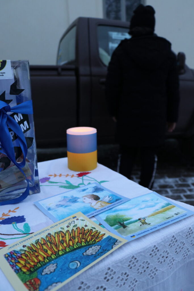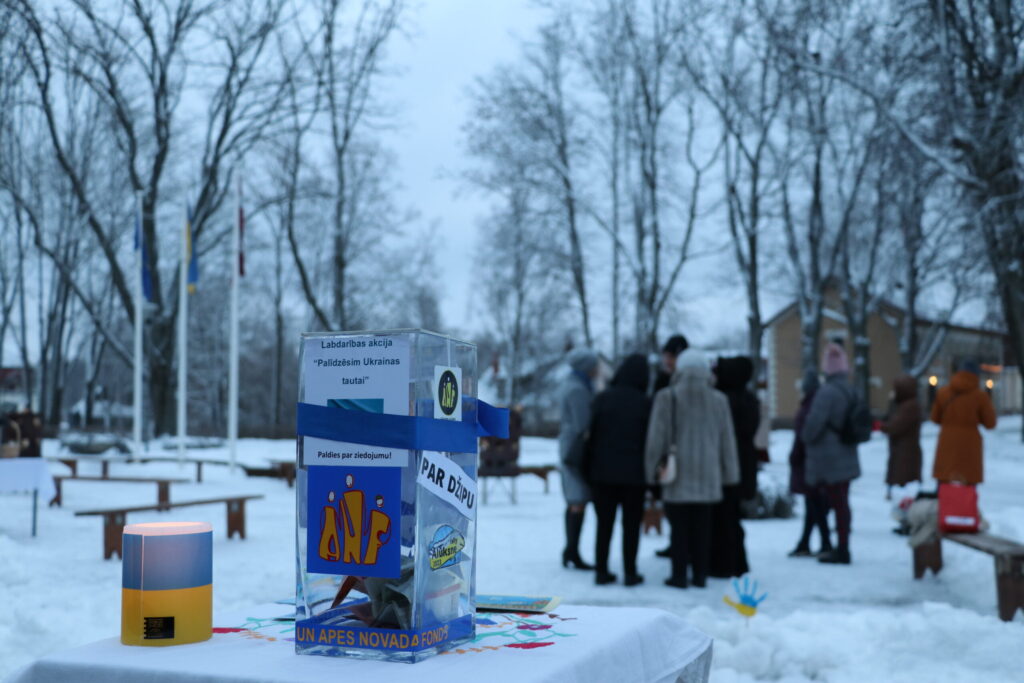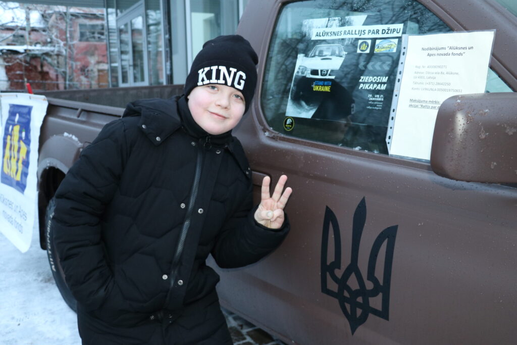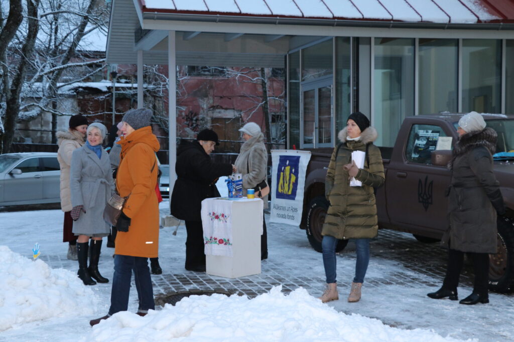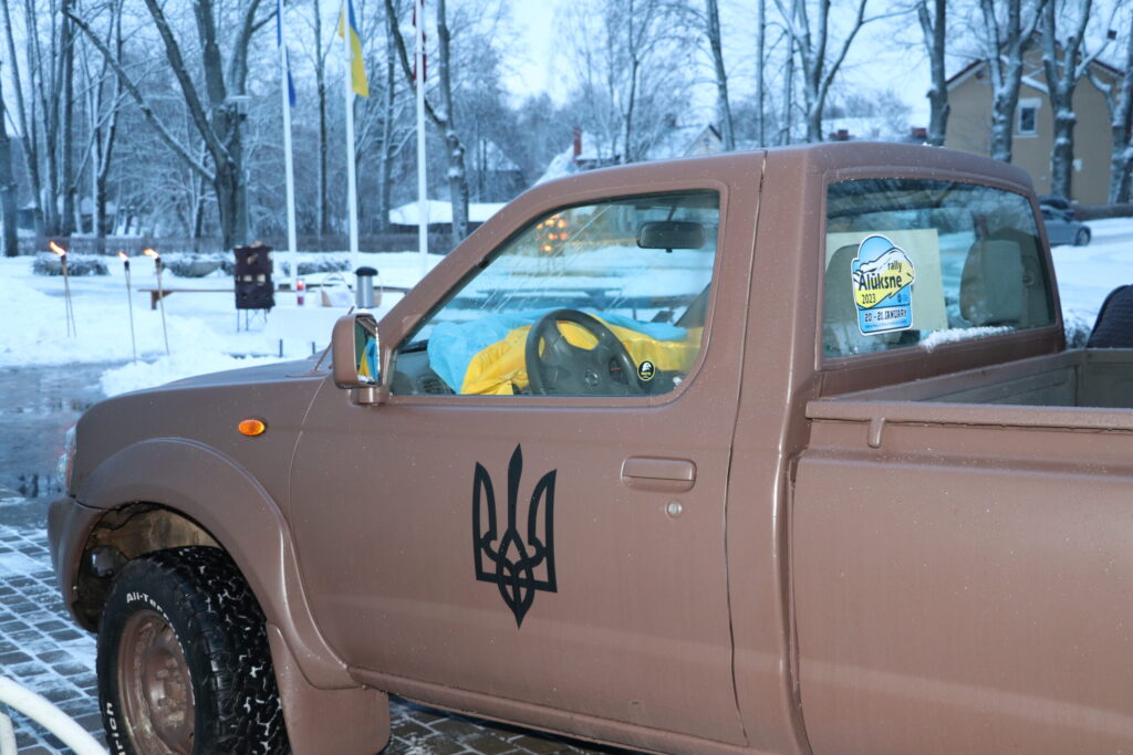 Pasākumā varēja arī ziedot džipa iegādei Ukrainas aizstāvjiem.