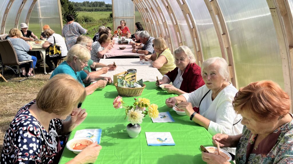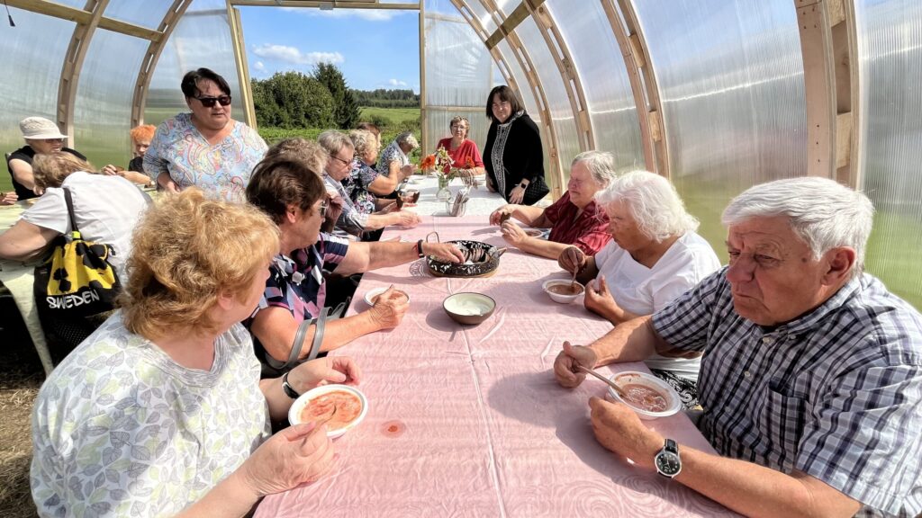 Īsts piedzīvojums gaidīja Sniedzes un Ritvara Ragžu rožu, hortenziju un tomātu zemē “Ziediņos”, kur saimnieki pacienāja ar tomātu zupu un izvadāja pa plašajām siltumnīcām ar tomātu, zemeņu un rožu stādiem. Turpat arī hortenziju, flokšu, asteru un citu ziedu paradīze.