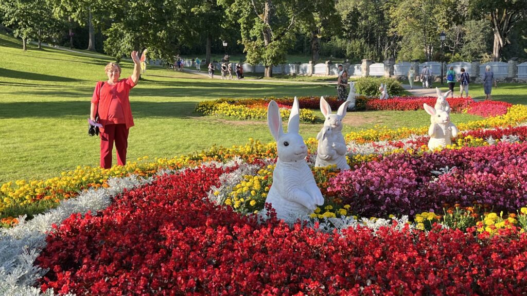 Ceļojumu noslēdza mierīga pastaiga “Alises brīnumzemē”, kur arī bija redzami īsti brīnumi – rozā, sarkani un balti ziedoši koki, violeta samta māja, milzu sēnes, brīvdabā servēti tējas un kafijas galdi, skulptūras, atrakciju vietas bērniem, strūklakas un ziedi, ziedi, ziedi…