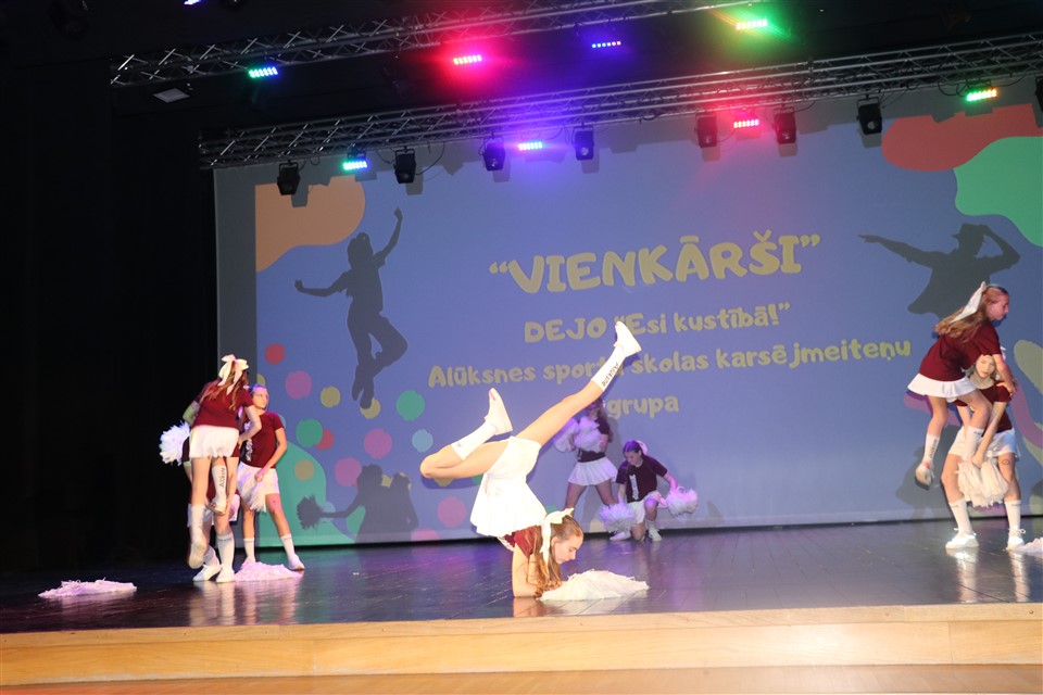 Piektdienas vakarā Alūksnes Kultūras centra zāli piepildīja bērnu un jauniešu enerģija, smaids un prieks deju ritmos. Mūsdienu deju koncertā “Deja vieno” satikās Alūksnes Bērnu un jauniešu centra mūsdienu deju kolektīvi, Alūksnes Sporta skolas karsējmeiteņu grupa “Esi kustībā!”, kā arī viesi no Balvu deju studijas “Terpsihora”.