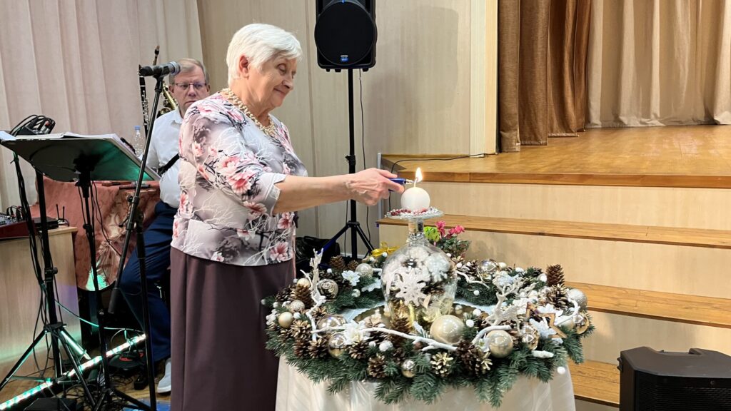 Novembra pēdējā dienā Alūksnes pensionāru biedrības “Sudrabs” pārstāvji devās ciemos pie senioriem Gaujienā, kur kopā ar Smiltenes novada senioriem aizdedza pirmo sveci Adventa vainagā.