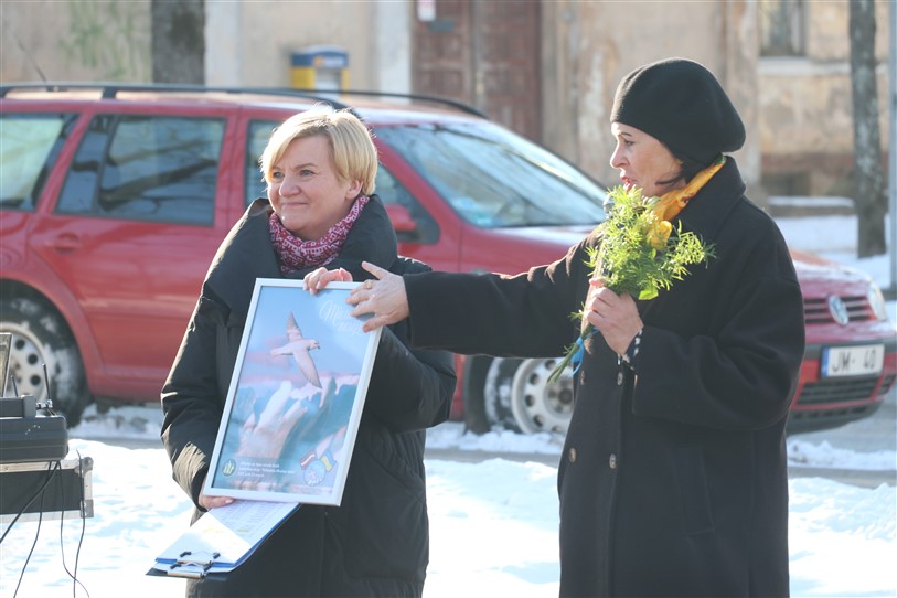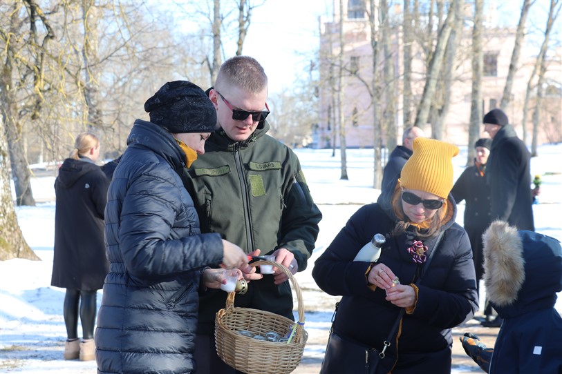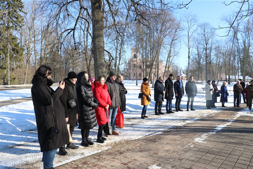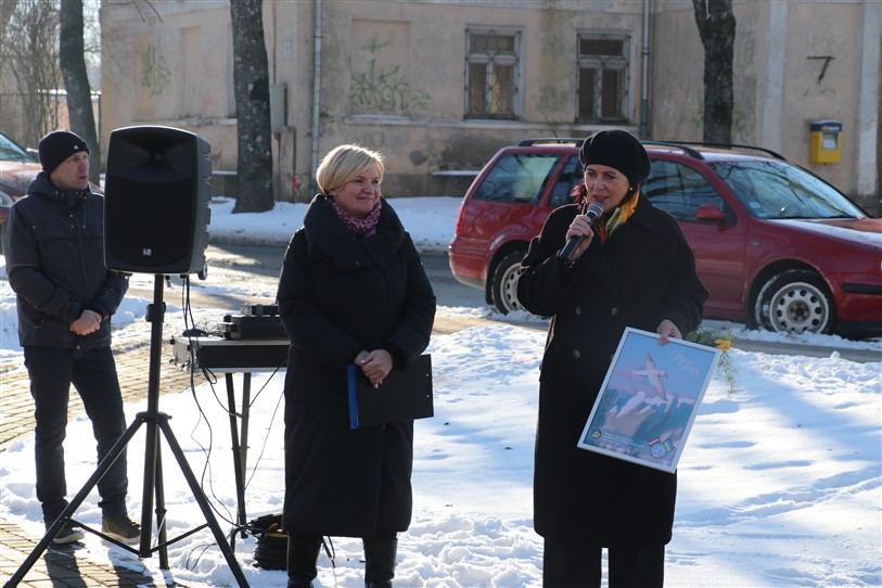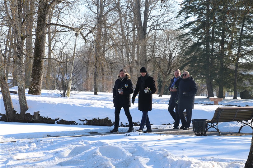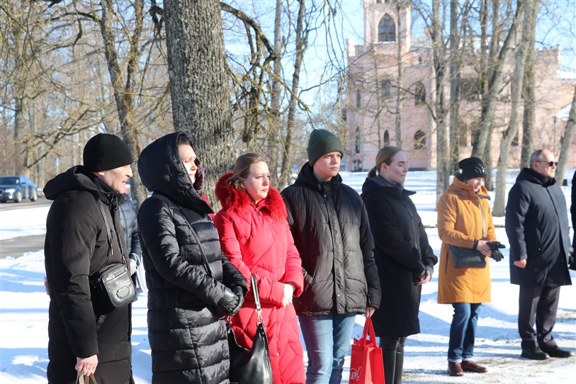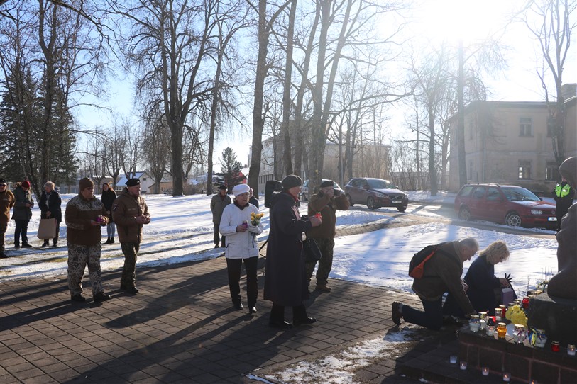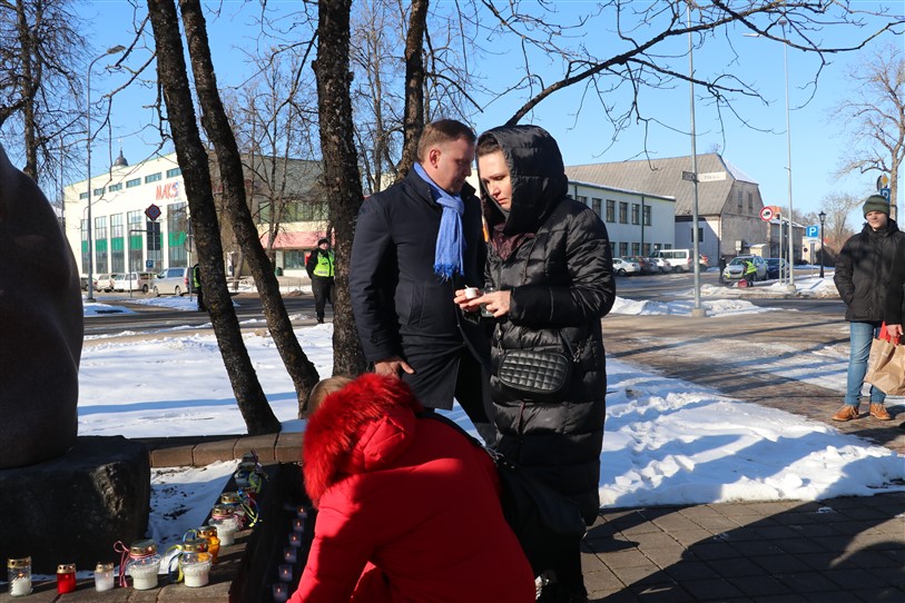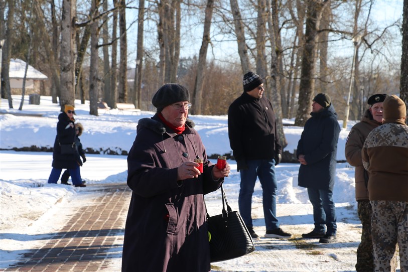 Pie Mātes tēla pulcējās kā alūksnieši, tā ukraiņi. Ikviens nolika svecīti kā atbalsta simbolu Ukrainai – 24. februārī apritējis jau trešais gads, kopš agresorvalsts iebrukuma.