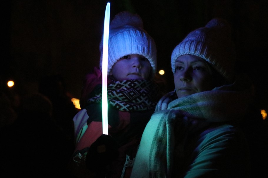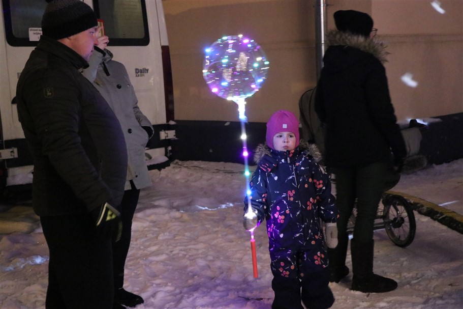 Rūķa pavadībā Alūksnē uzmirdzējusi krāšņa egle, kuru apskatīt bija sanākuši daudz ļaužu. Īpašs prieks par zaigojošo egli bija bērniem, taču arī pieaugušie izjuta svētku sajūtu un uzmirdzam Ziemassvētku tuvojošos brīnumu viņu sirdīs.