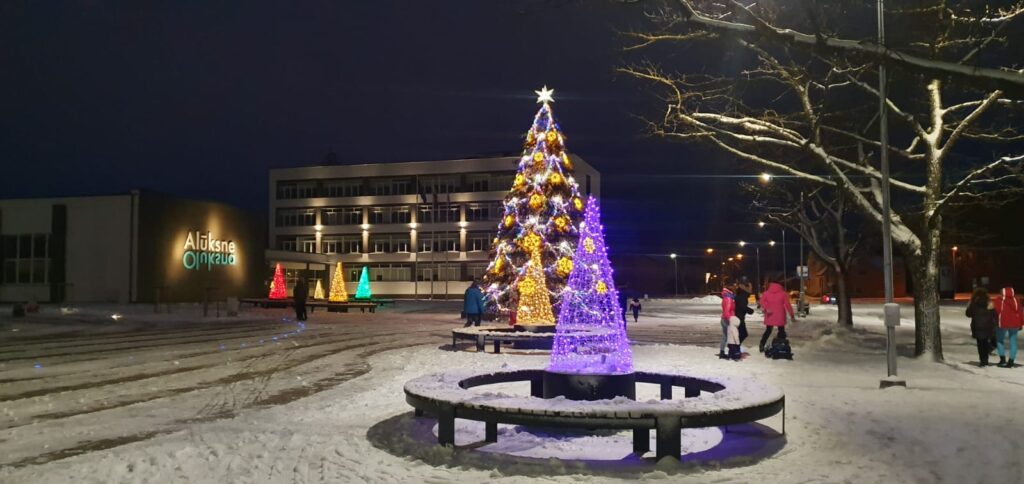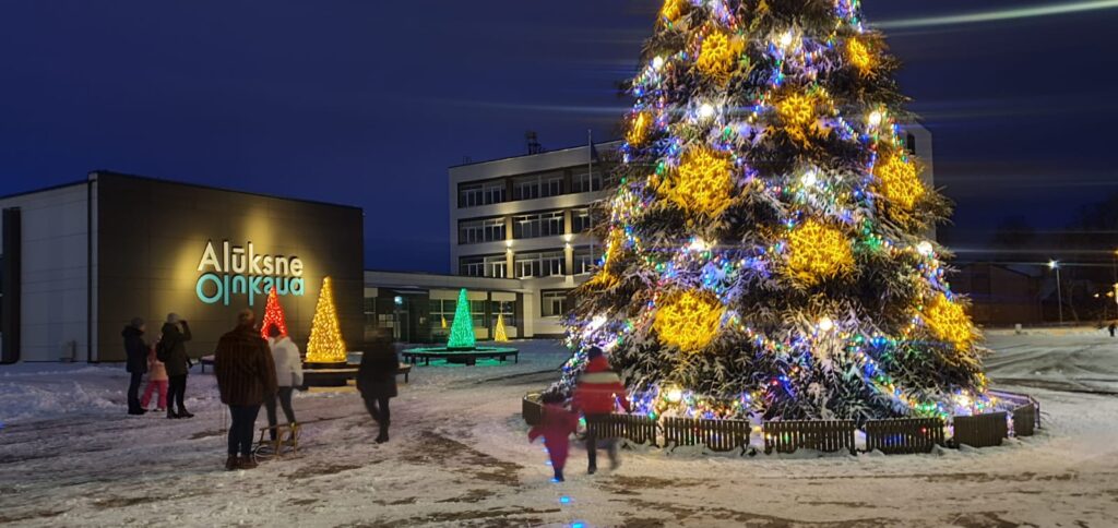 Šogad jau pirmajā adventes svētdienā iemirdzējās lielā egle Alūksnes novada pašvaldības administratīvās ēkas laukumā. Tā ir košāka nekā citus gadus, laukums papildināts arī ar krāsainām eglītēm. Lielo egli saskaņā ar noslēgto līgumu būvēja pašvaldības aģentūra, bet par māksliniecisko noformējumu parūpējušies mākslinieki Lilija Kukle un Gintars Čerbikovs. Kā allaž Ziemassvētku noskaņu rada eņģeļi pie parkā pie Alūksnes Jaunās pils, bet līdz otrajai adventei svētku rotā ietērpsies arī skvērs pie Alūksnes Kultūras centra.