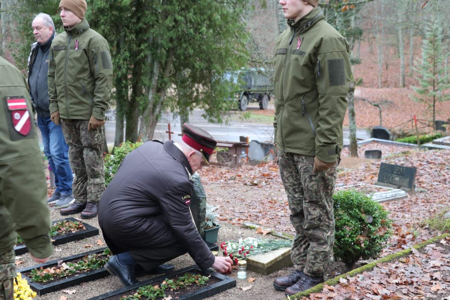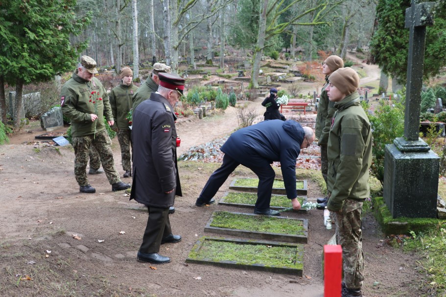 Zemessardzes 31. kājnieku bataljona zemessargi, zemessardzes veterāni un Alūksnes novada pašvaldības pārstāvji nolika ziedus pie Lāčplēša Kara ordeņa kavalieru atdusas vietām Alūksnes Lielajos un Garnizona kapos.