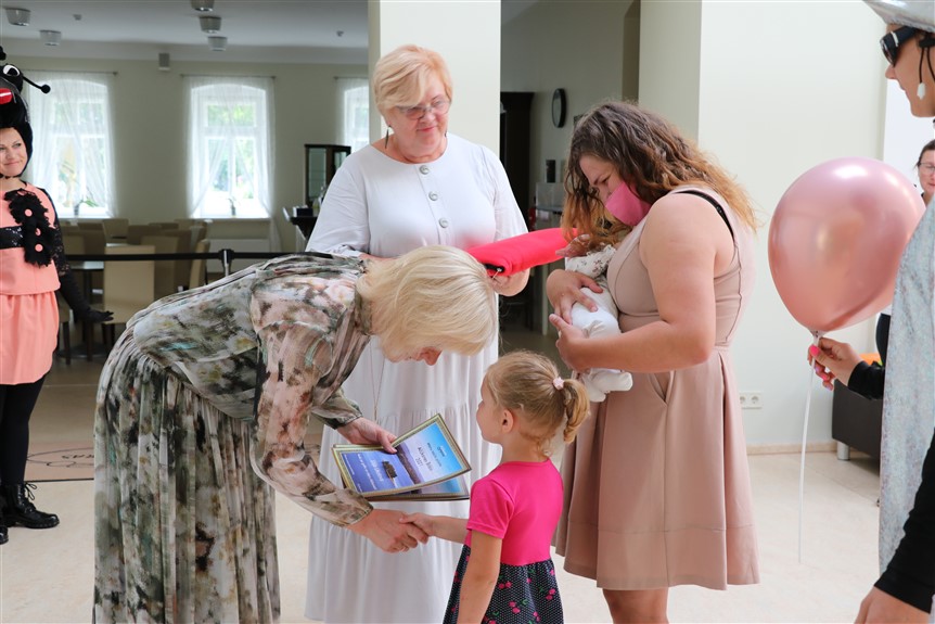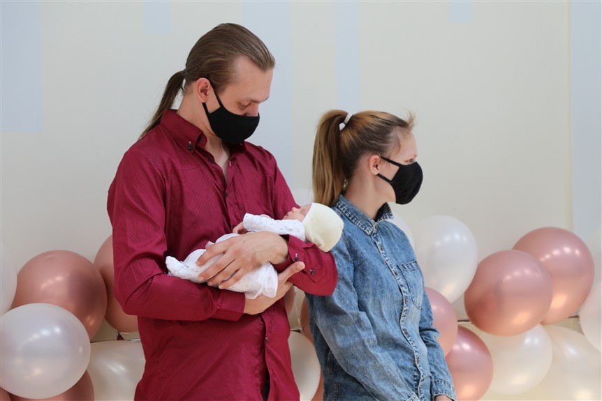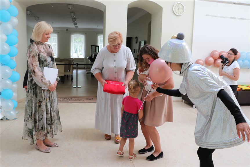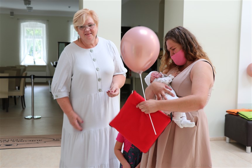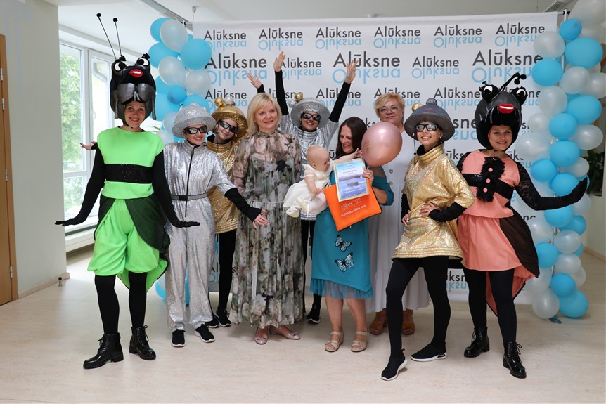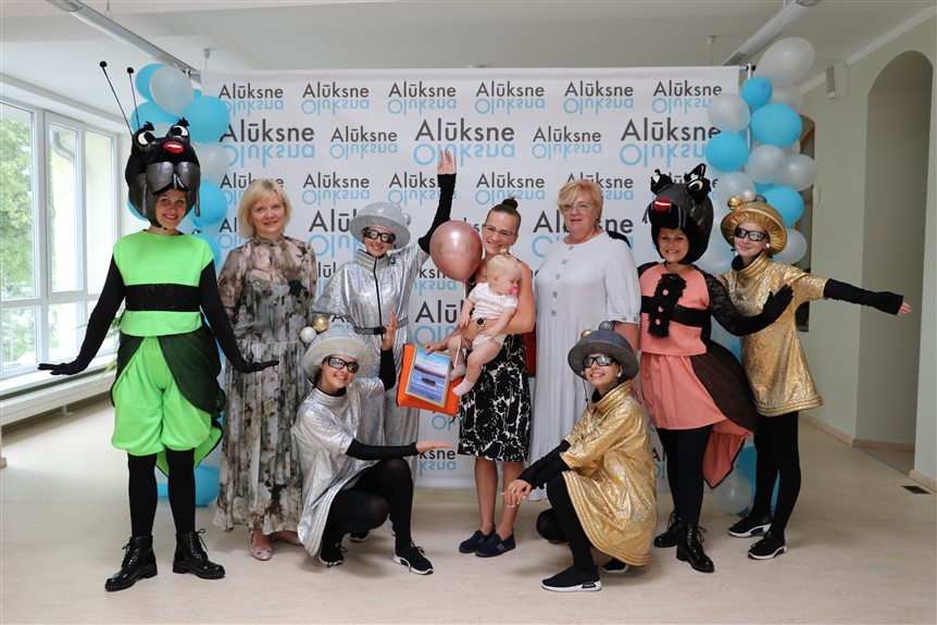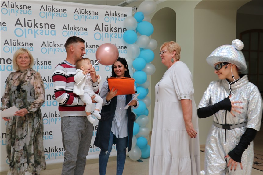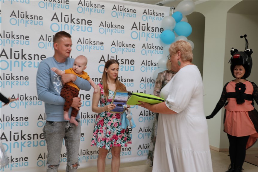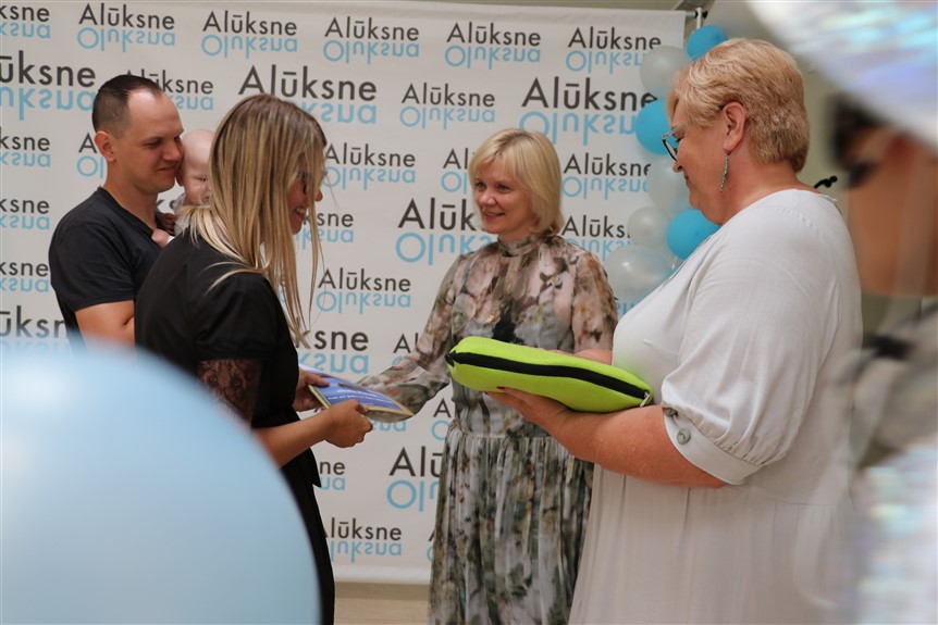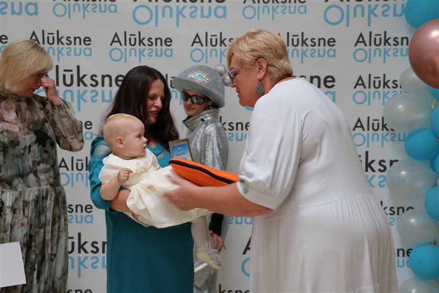 Alūksnes novada pašvaldība sveic pēdējā gada laikā dzimušos mazuļus un viņu vecākus, dāvinot siltu plediņu.