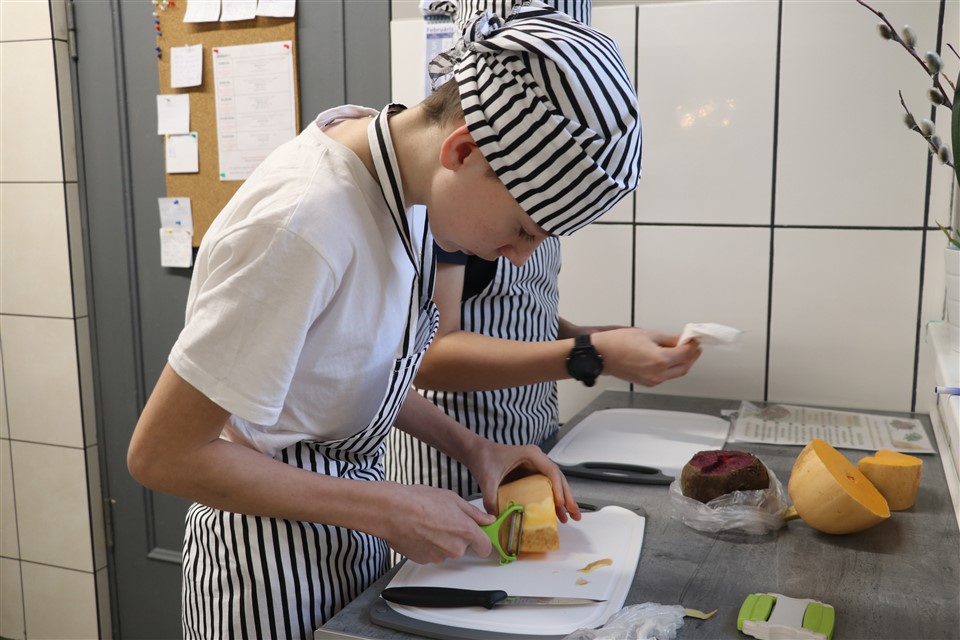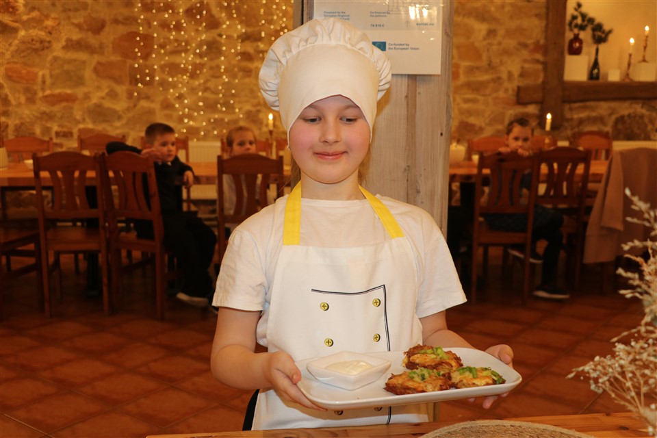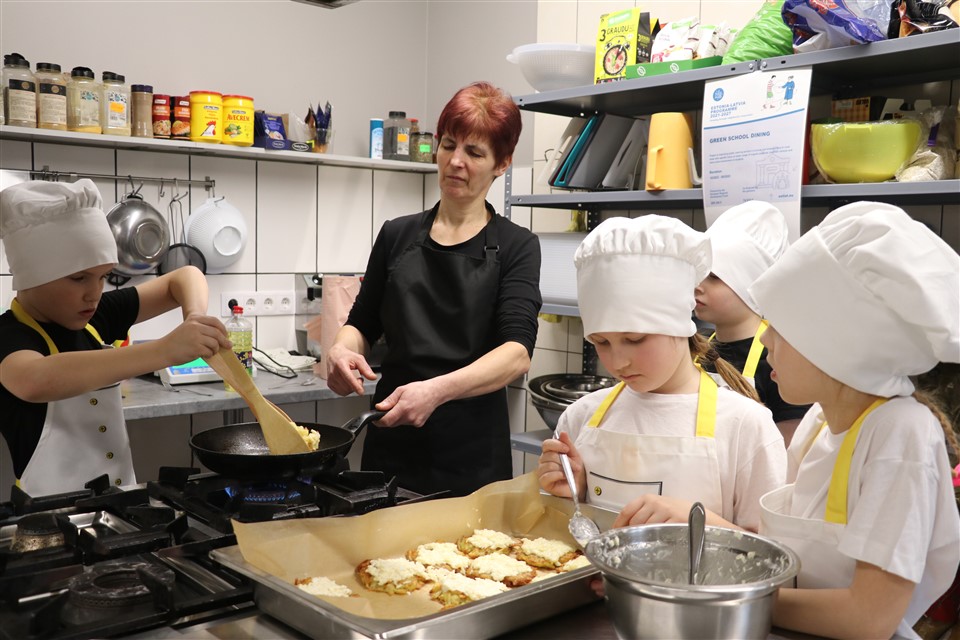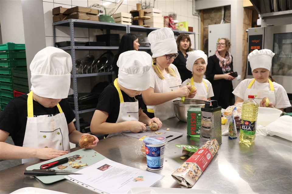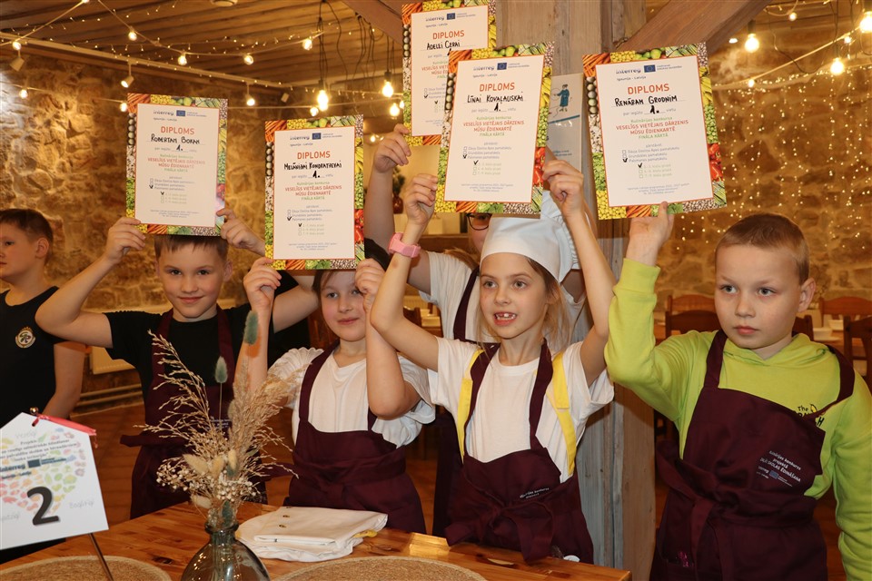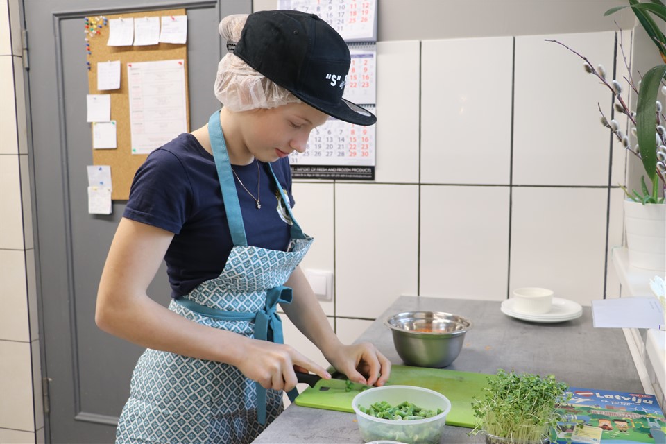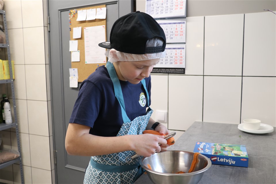 Viesu nama “Kalnarušķi” virtuvē otrdien valdīja neparasta rosība – pie pannām un katliem šoreiz darbojās bērni. Projektā “Zaļās skolas ēdināšana” notika kulinārijas konkurss “Veselīgs vietējais dārzenis mūsu ēdienkartē”, kurā savas prasmes izmēģināja D. Ozoliņa Apes, Grundzāles un Palsmanes pamatskolu audzēkņi no 1. līdz 9. klasei. Bērni ar aizrautību rosījās virtuvē, un šī nebija tikai sacensība par gardāko ēdienu, bet iespēja bērniem radoši izpausties un parādīt savas prasmes.