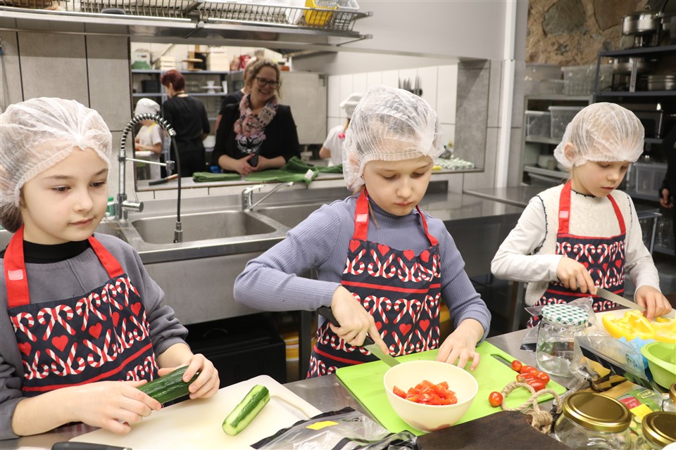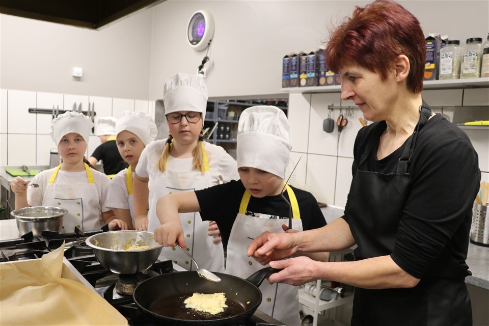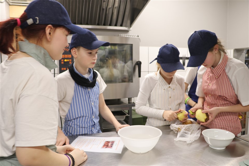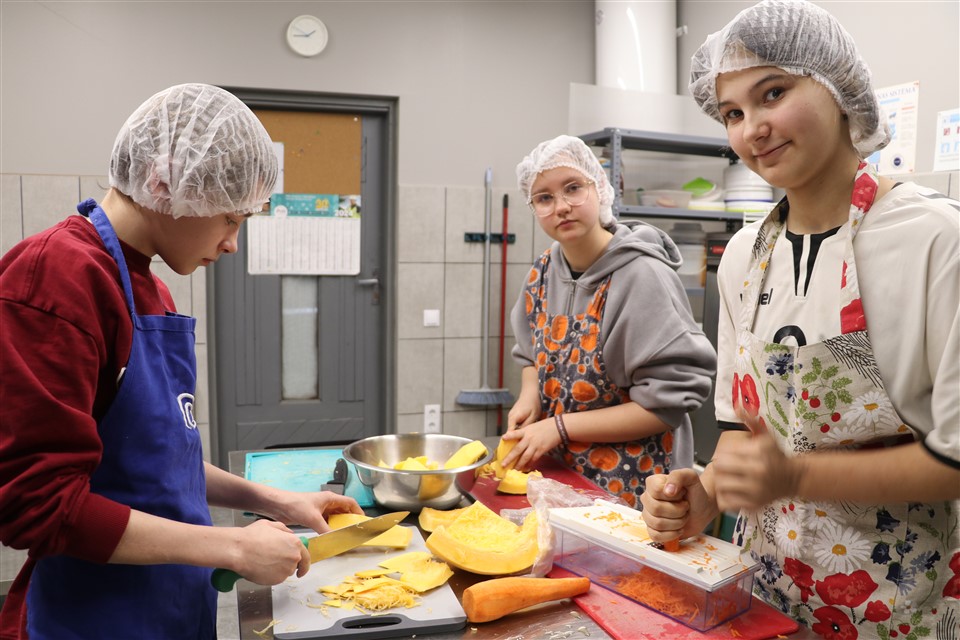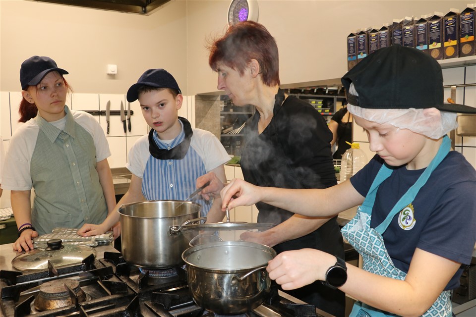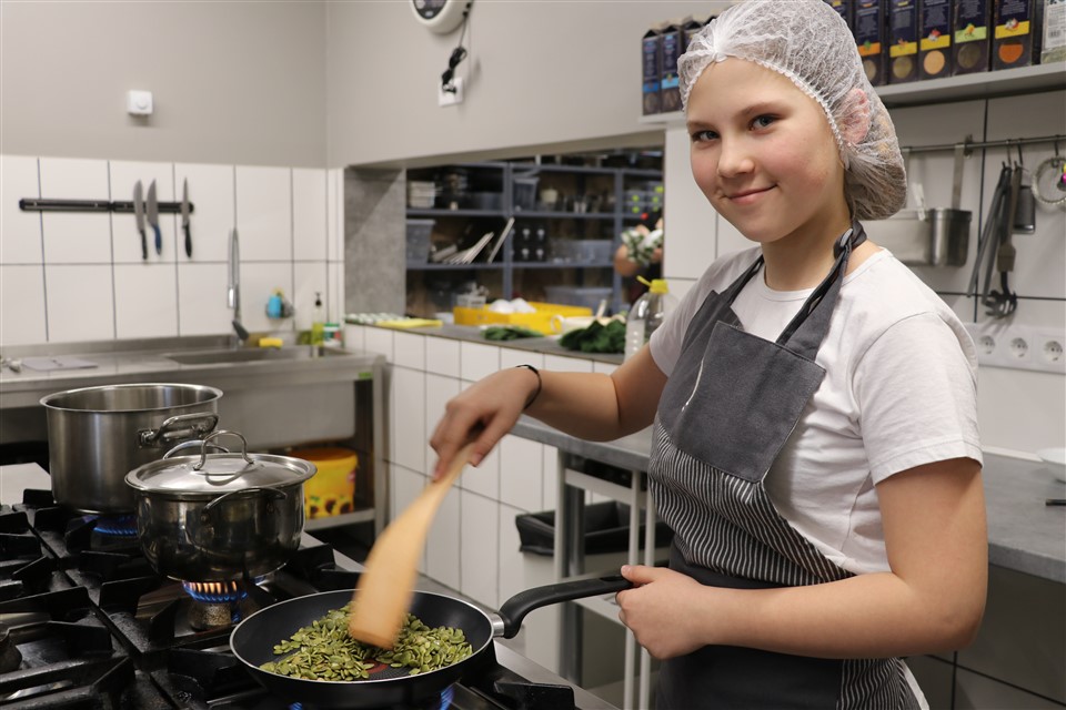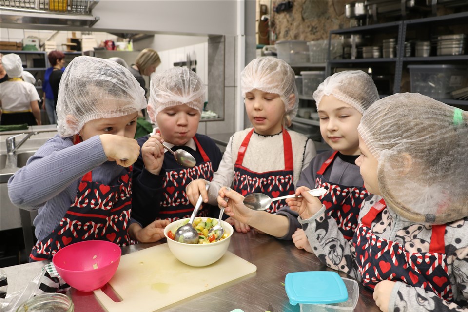 Viesu nama “Kalnarušķi” virtuvē otrdien valdīja neparasta rosība – pie pannām un katliem šoreiz darbojās bērni. Projektā “Zaļās skolas ēdināšana” notika kulinārijas konkurss “Veselīgs vietējais dārzenis mūsu ēdienkartē”, kurā savas prasmes izmēģināja D. Ozoliņa Apes, Grundzāles un Palsmanes pamatskolu audzēkņi no 1. līdz 9. klasei. Bērni ar aizrautību rosījās virtuvē, un šī nebija tikai sacensība par gardāko ēdienu, bet iespēja bērniem radoši izpausties un parādīt savas prasmes.