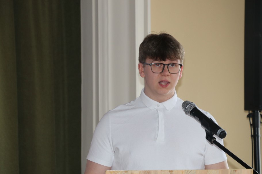 Ernsta Glika Alūksnes Valsts Ģimnāzijas 11. klases skolēns Matīss Markuss – skolotāja Iveta Mikijanska.