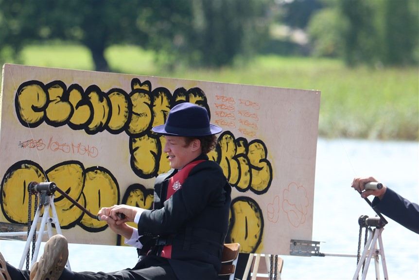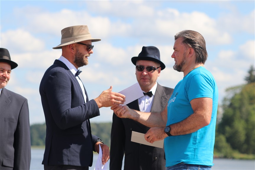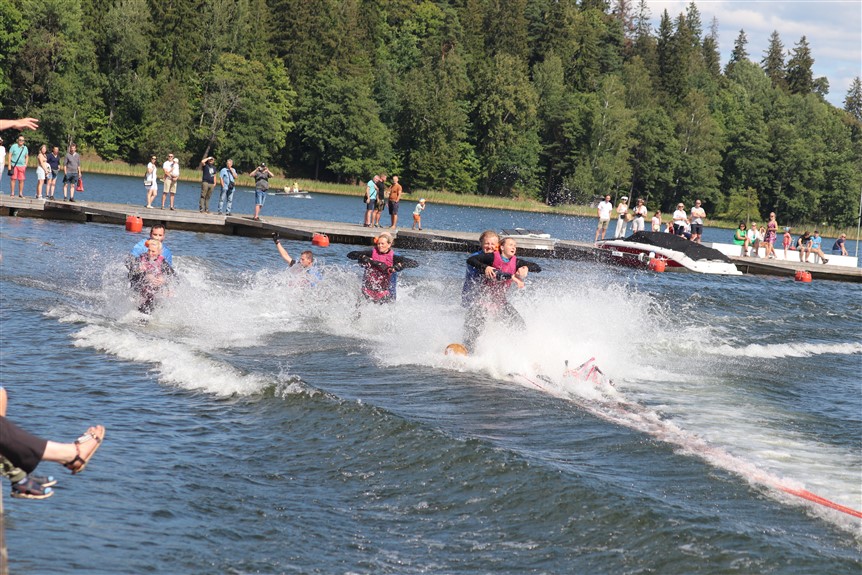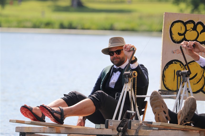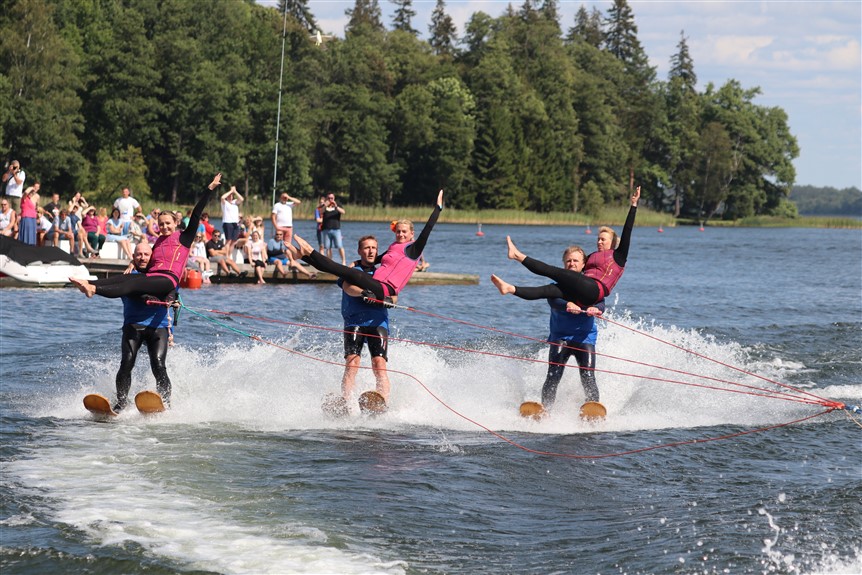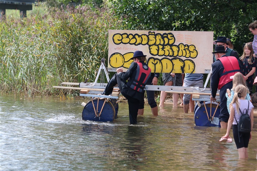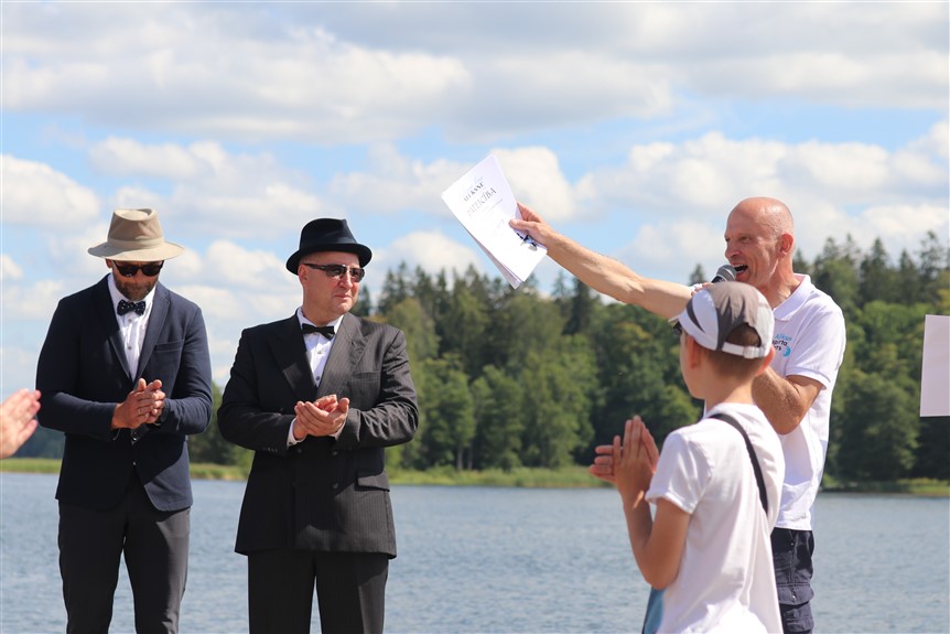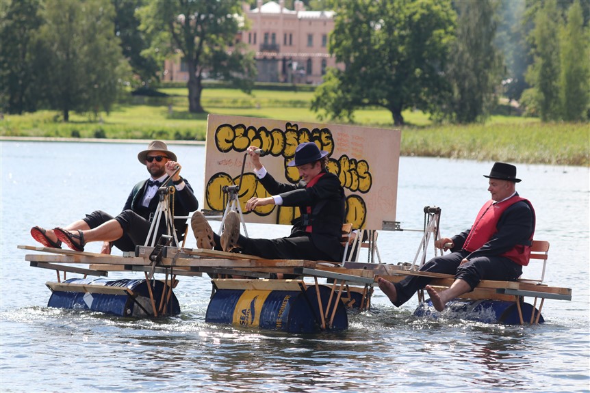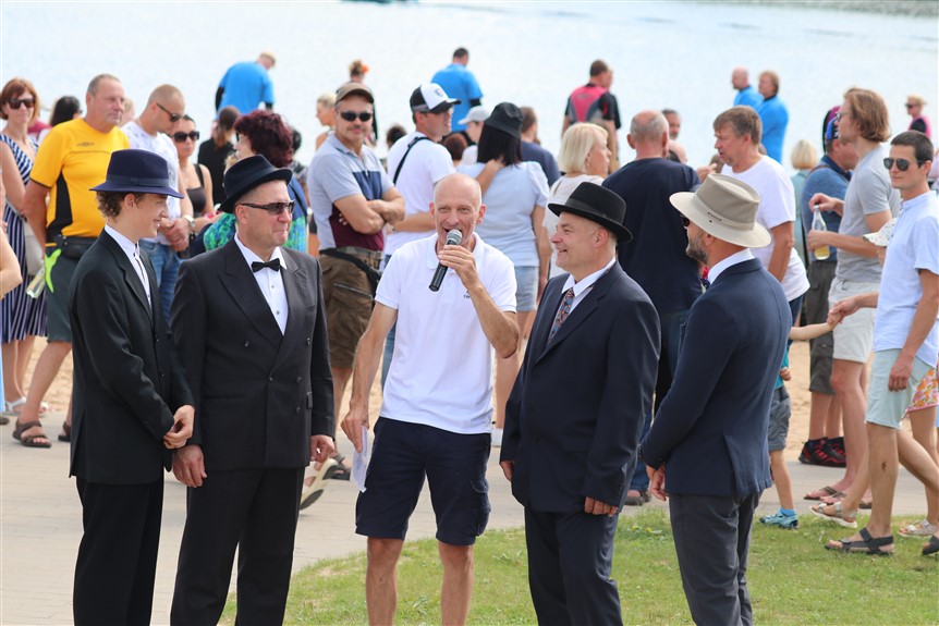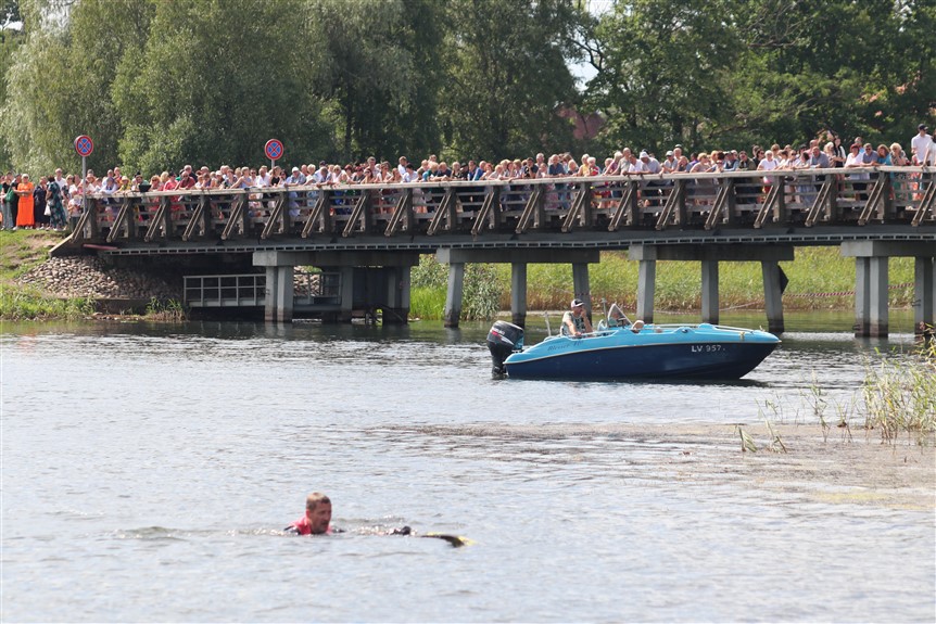 Netradicionālo peldlīdzekļu parādē šogad piedalījās tikai viena komanda – alūksnieši “Ozo moto – gribam foto” ar pašgatavotu laivu uz četrām metāla mucām, bet nepārspējami bija Jūrmalas sporta kluba “Partizāņu ugunskurs” ūdens akrobātikas paraugdemonstrējumi. Pasākumu komentēja divi Gunti – Guntis Krivms un Guntis Kozilāns.