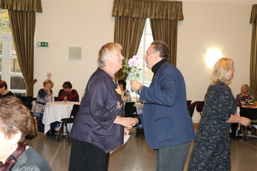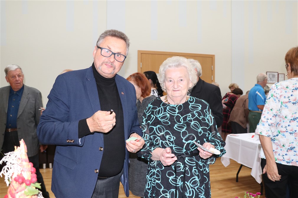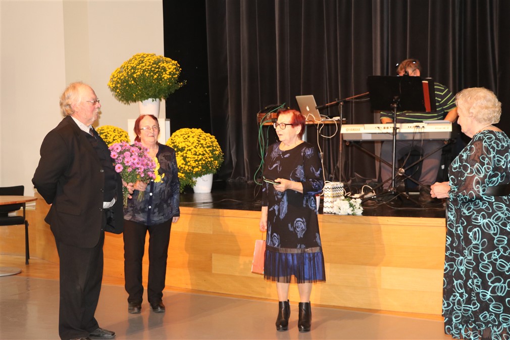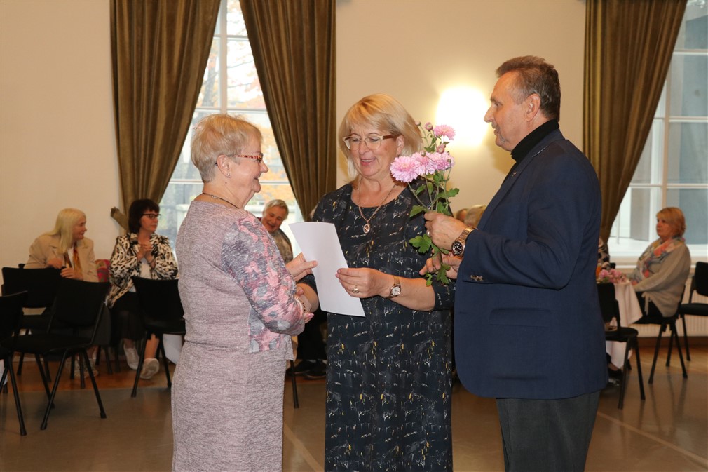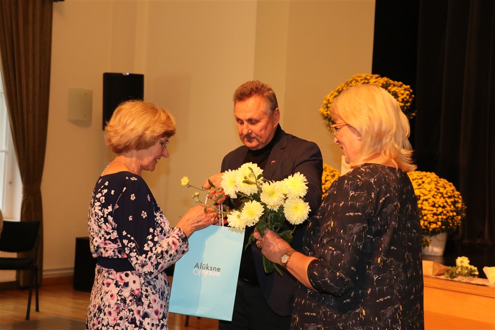 Jubilejas reizē novada seniorus pašvaldības vārdā sveica Alūksnes novada domes priekšsēdētāja vietnieki Aivars Fomins un Jānis Sadov-