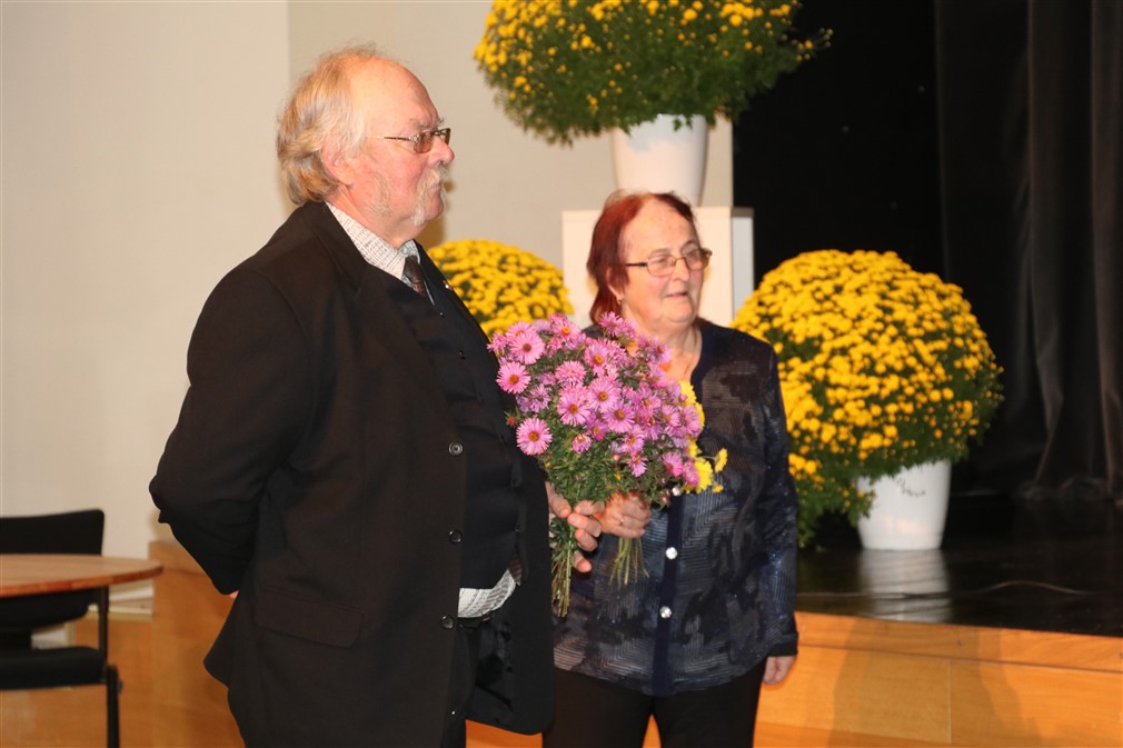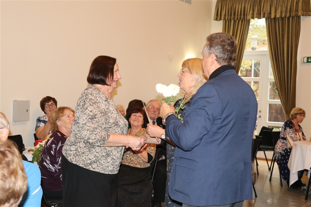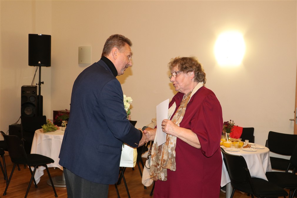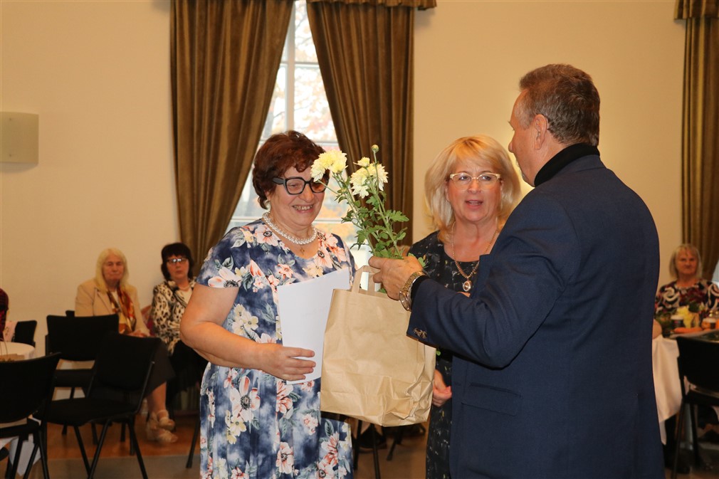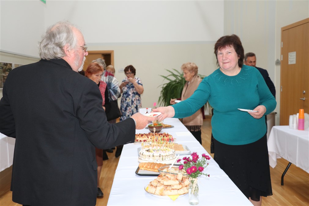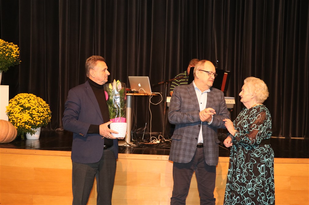 Jubilejas reizē novada seniorus pašvaldības vārdā sveica Alūksnes novada domes priekšsēdētāja vietnieki Aivars Fomins un Jānis Sadov-