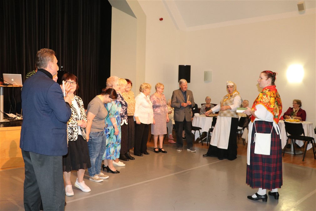 Savukārt, kamēr žūrija strādāja, skaitot balsis, seniorus izklaidēja Jaunlaicenes muižas muzeja “Malēnieša pasaule” darbinieces ar ēverģēlībām īsti malēniskā gaumē. Tāpat bija iespēja uzgriezt rudens valsti alūksnieša Zigmāra Krūmiņa spēlētās mūzikas pavadījumā.