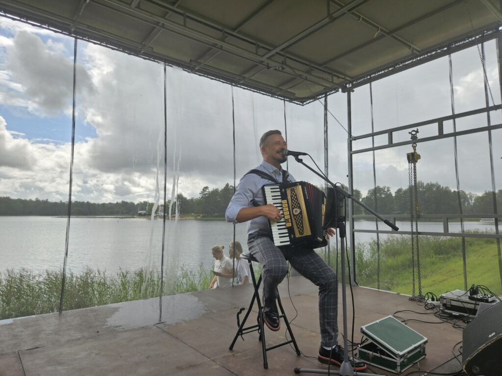 Šodien ne tikai ilgi gaidītie kapusvētki, kad satiekas draugi un radi, bet arī Arta Šimpermaņa koncerts Tempļa kalna pakājē. Dažas lietus lāses nebija traucēklis, lai alūksnieši un pilsētas viesi baudītu zināmas un ne tik zināmas dziesmas akordeona pavadībā.