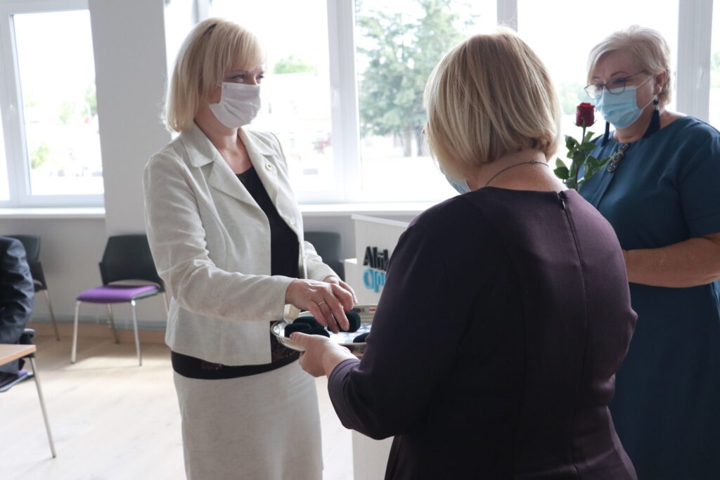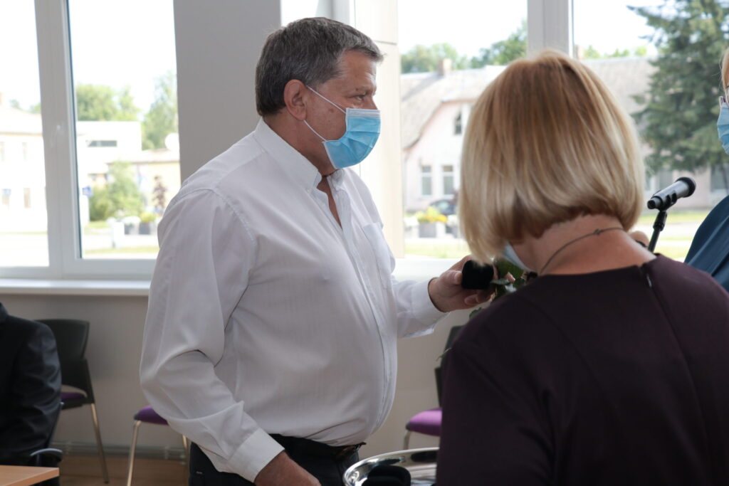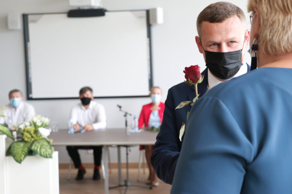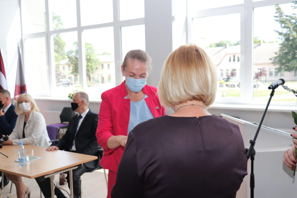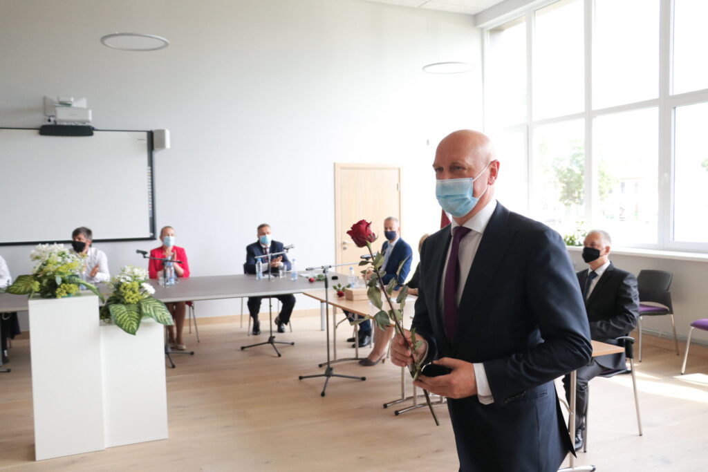 Uzsākot domes sēdi katram kandidātam tika pasniegta krūšu nozīme, kā apliecinājums tam, ka viņi kļuvuši par Alūksnes novada deputātiem.