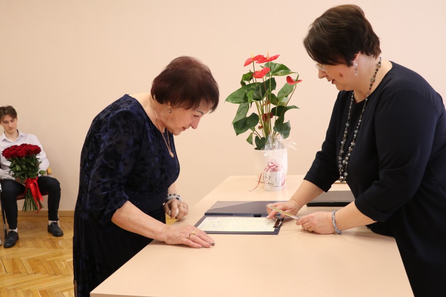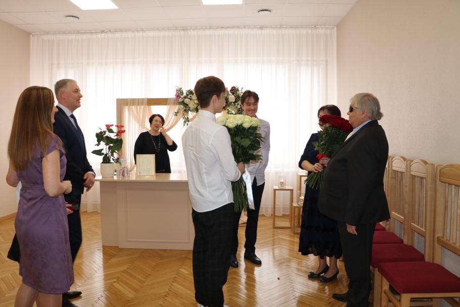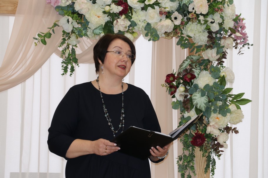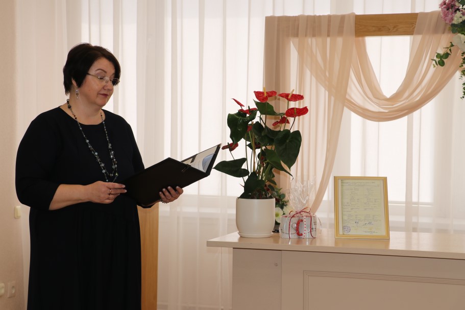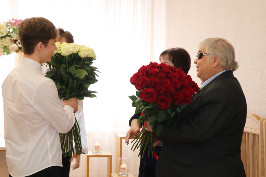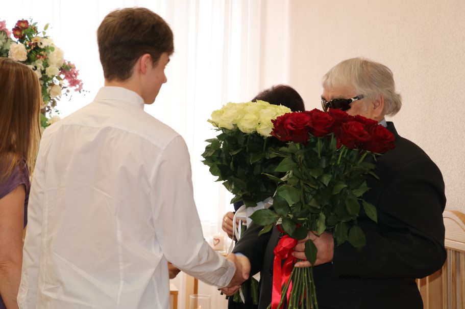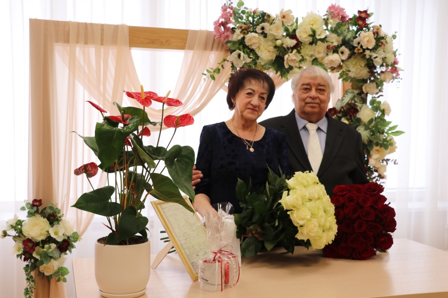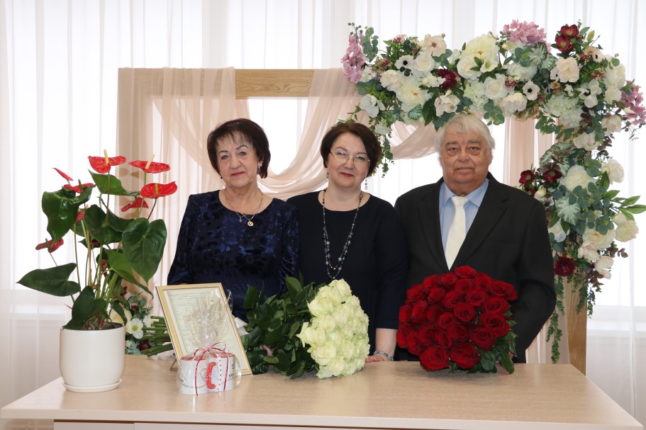 “Alūksne ir īpaša vieta, kur slēgt laulību. Te ir savi, īpašie mīlestības stāsti un teikas, mīlestības apvītas vietas. Šeit dzīvo labi cilvēki, šeit ir paaudzēs krāts spēks un stiprums, mīlestība pret šo vietu un vienam pret otru. Sakot, es mīlu tevi, katrs šajos vārdos ieliek savu īpašo jēgu, jo tie nav vienkārši vārdi, tajos slēpjas ticība, cerība un mīlestība. Laulība un ģimene ir spārni, kas cilvēku ceļ,” sveicot Račiku pāri skaistajā dzīves jubilejā, teica Alūksnes novada Dzimtsarakstu nodaļas vadītāja Inga Ozoliņa. Viņa bija sarūpējusi izrakstu no toreizējā Dzimtsarakstu nodaļas laulību reģistra, kas apliecināja abu noslēgto savienību. Maruta un Andris toreizējo izvēli vēlreiz apliecināja ar saviem parakstiem, lai šo dokumentu turpmāk mūžīgi glabātu savās mājās.