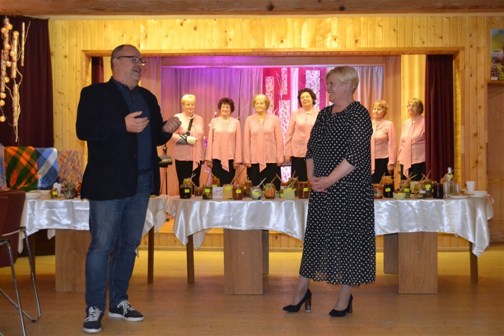 “Esam pateicīgi Zeltiņu tautas namam un pagasta pārvaldei, ka varam šajās mājīgajās telpās svinēt rudeni, jo rudens ir tik bagāts un košs, ka tas noteikti jāsvin. Rudeni svin arī pati daba, kas nokrāsojusi lapas dzeltenas un sarkanas, kas kā zelts tās krīt lejā pateicībā par to, ko tā ir devusi. Arī cilvēks rudenī saka paldies dabai. Un ne tikai rudenī. Jau, sākot no pavasara, cilvēks dabu mīl, sējot, sastrādājot zemi, izrādot tai cieņu. Vasarā ravē nezāles, lai viss augtu un zaļotu. Tad pienāk rudens, kad sakām paldies dabai par doto ražu. Gudrs bija tas cilvēks, kurš izdomāja, ka visu var likt burciņās, lai raža neaizietu bojā, bet tā tiktu saglabāta… Pensionāru biedrība “Sudrabs” kopā ar Alūksnes novada pašvaldību aicina saimnieces būt drošas un atvērt savus pagrabus, ledusskapjus, paņemt burciņas un doties uz kopēju notikumu, kur visu var pagaršot un kāds to visu arī novērtē,” pasākuma atklāšanā sacīja Alūksnes novada pašvaldības Kultūras un sporta nodaļas vadītāja Sanita Eglīte.