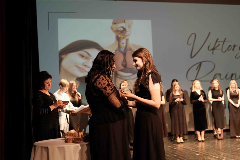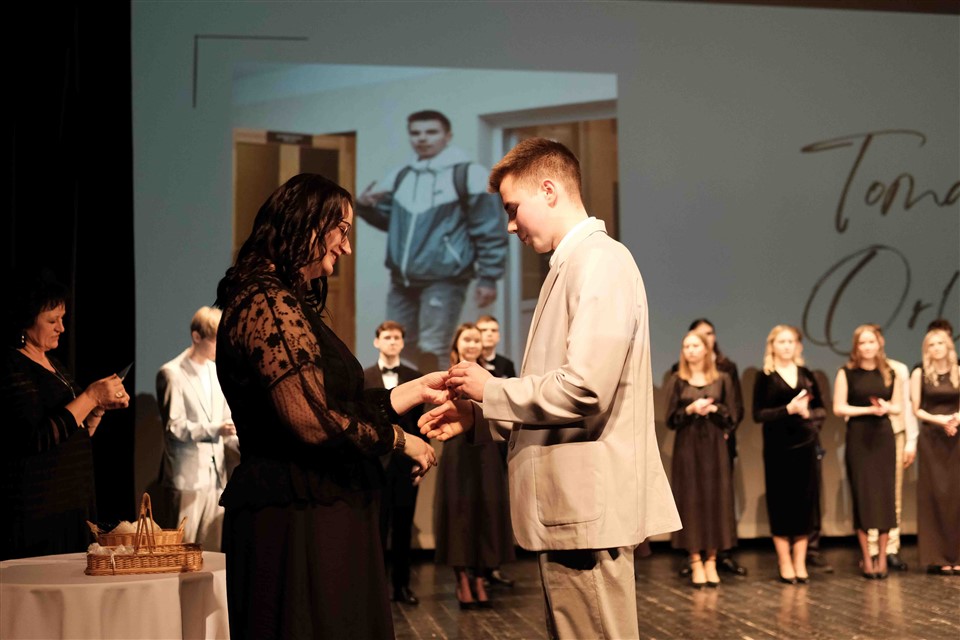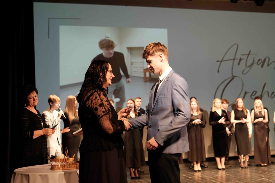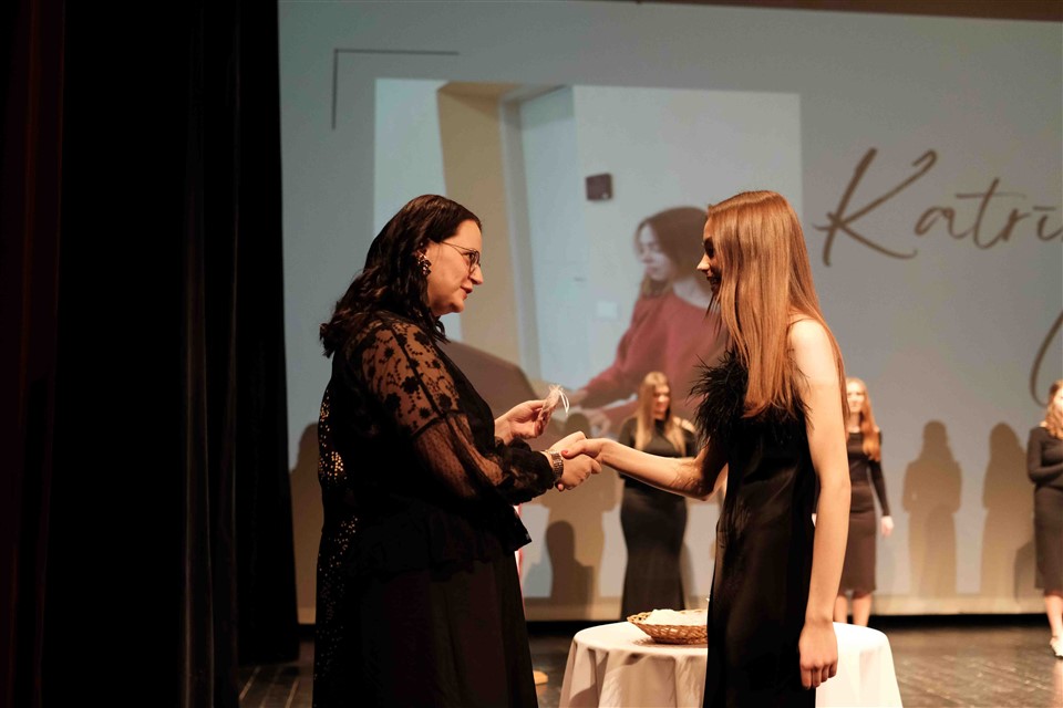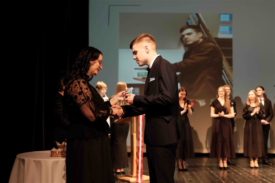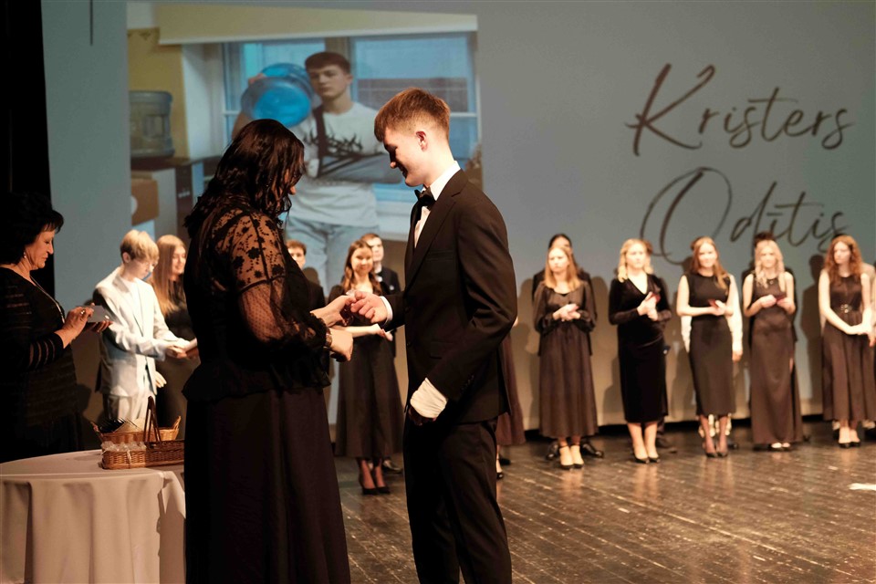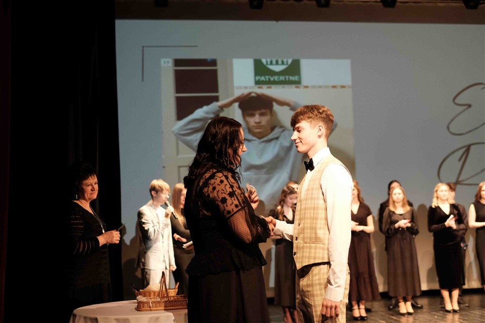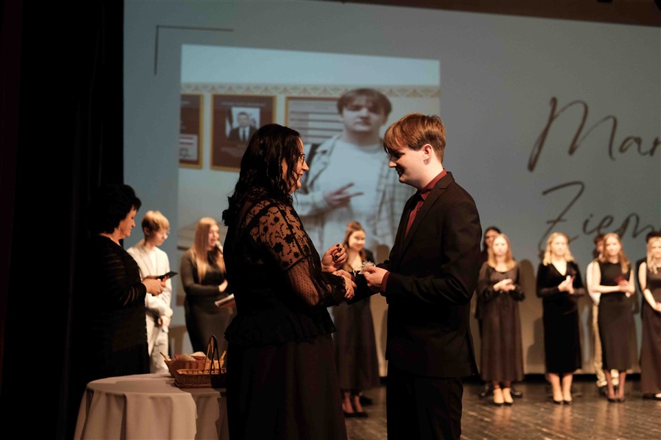 “Jaunieši, jūs esat dažādi, un tādus esmu jūs iepazinusi. Es jūs visus mīlu tieši jūsu dažādībā – no spožiem rezultātiem konkursos, sacensībās un olimpiādēs līdz asarām par kādu neveiksmi, kā arī sarunām manā kabinetā, uzklausot jūsu idejas, ierosinājumus,” uzrunā žetonu vakarā teica U. Grencione – Lapseniete.