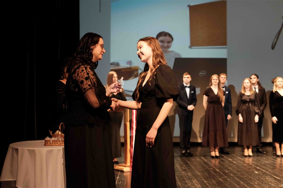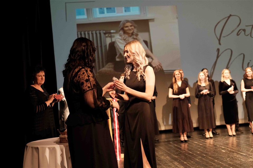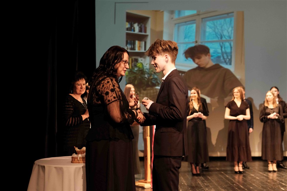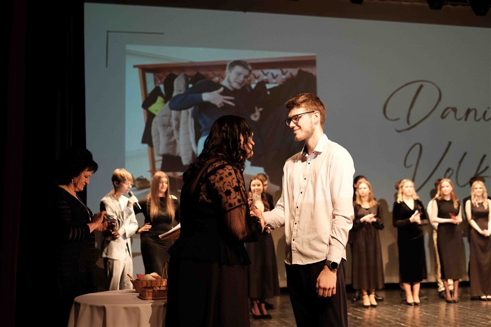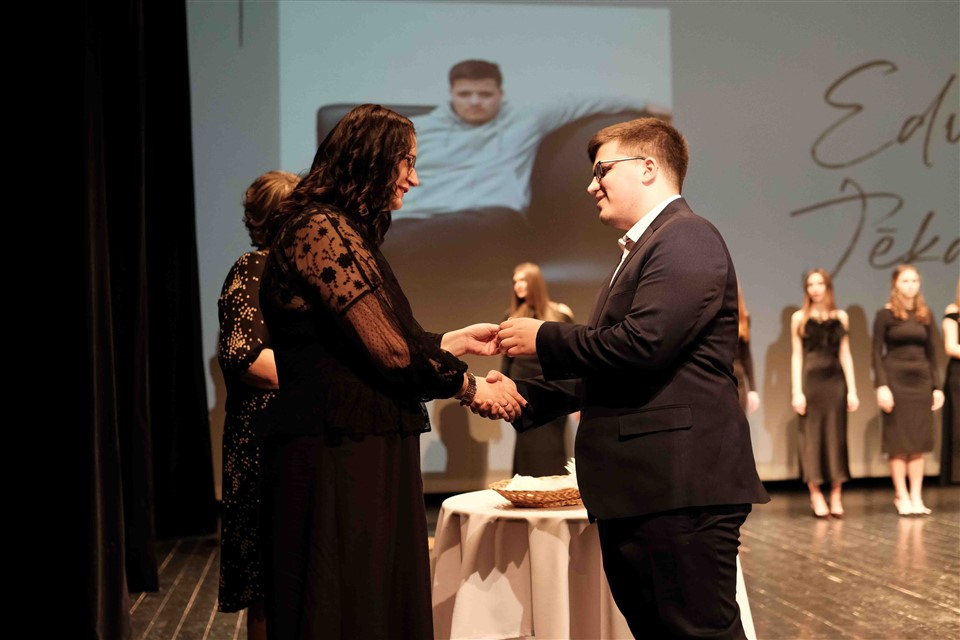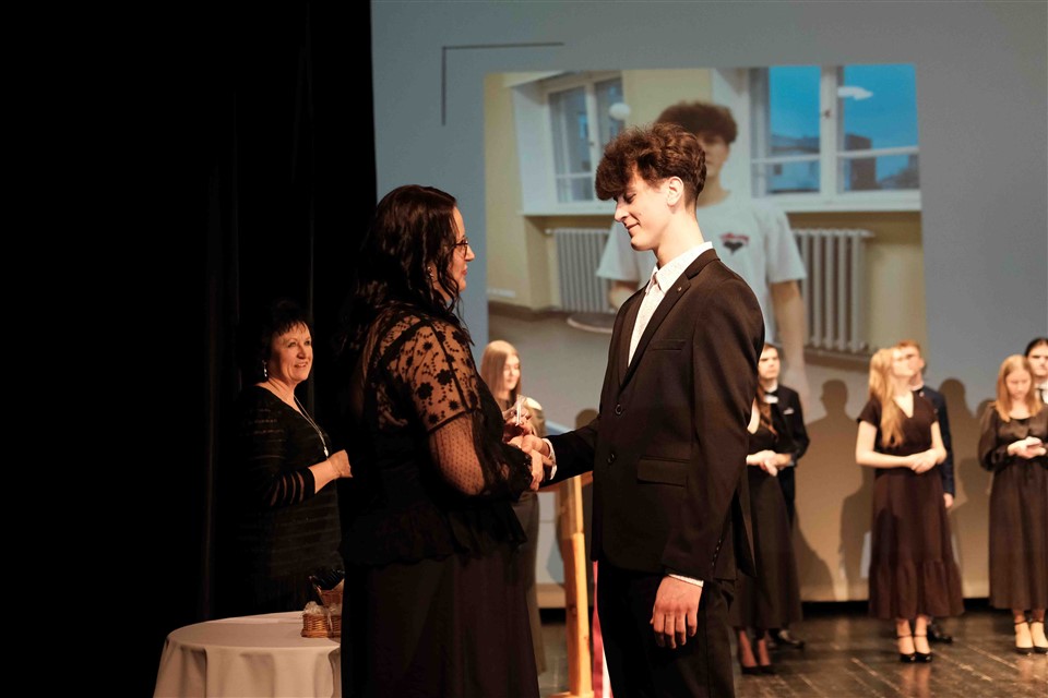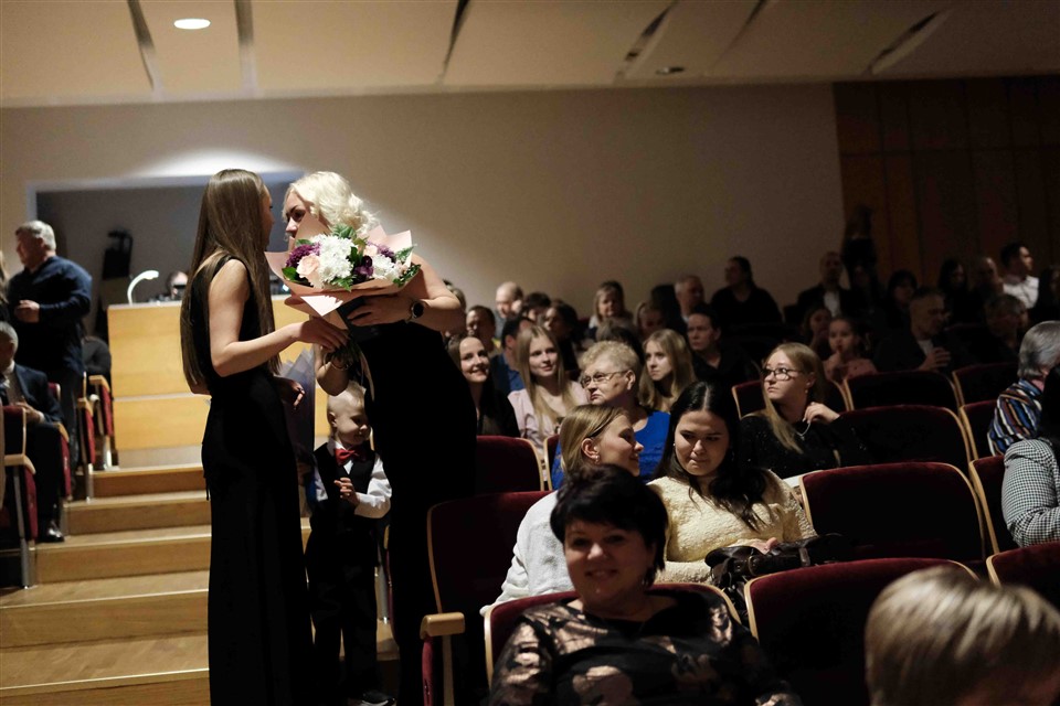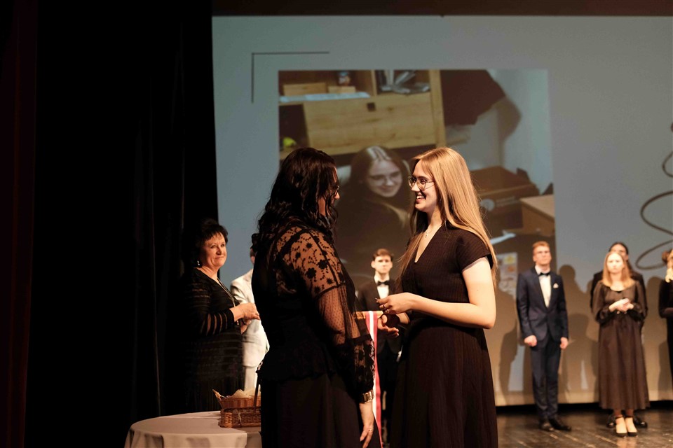 “Jaunieši, jūs esat dažādi, un tādus esmu jūs iepazinusi. Es jūs visus mīlu tieši jūsu dažādībā – no spožiem rezultātiem konkursos, sacensībās un olimpiādēs līdz asarām par kādu neveiksmi, kā arī sarunām manā kabinetā, uzklausot jūsu idejas, ierosinājumus,” uzrunā žetonu vakarā teica U. Grencione – Lapseniete.