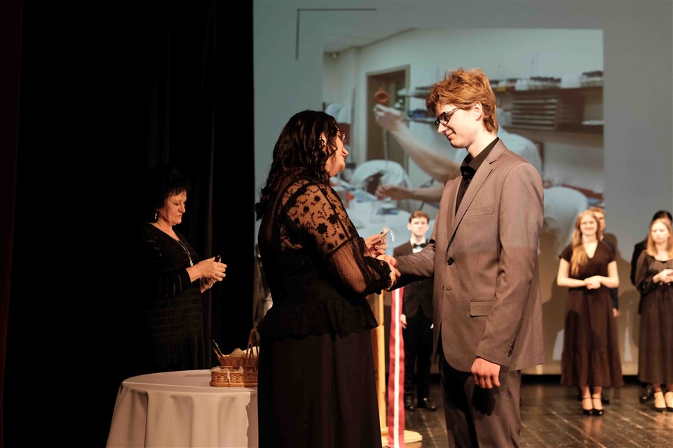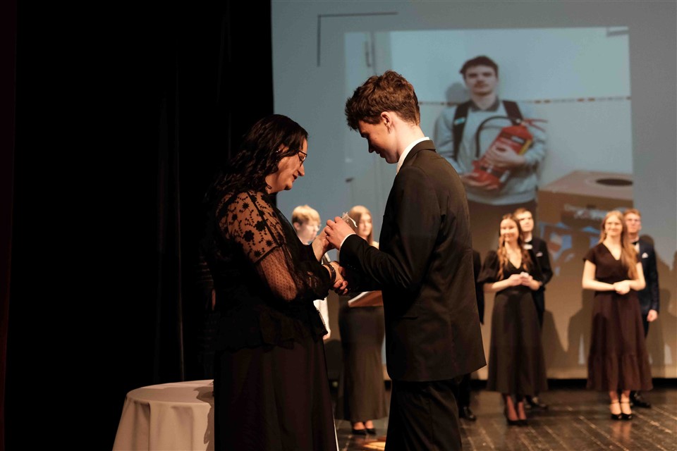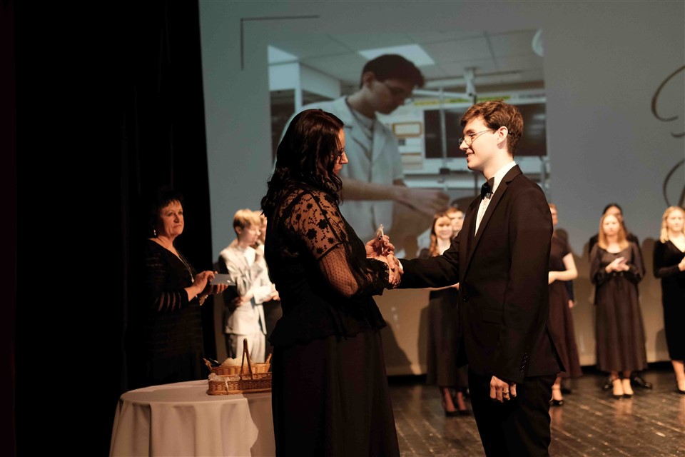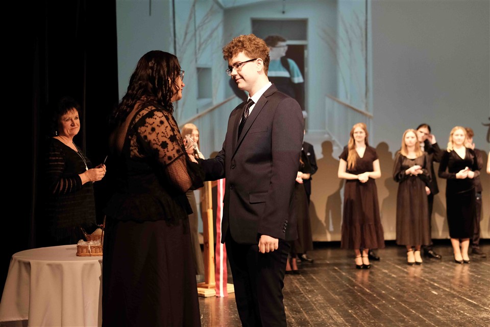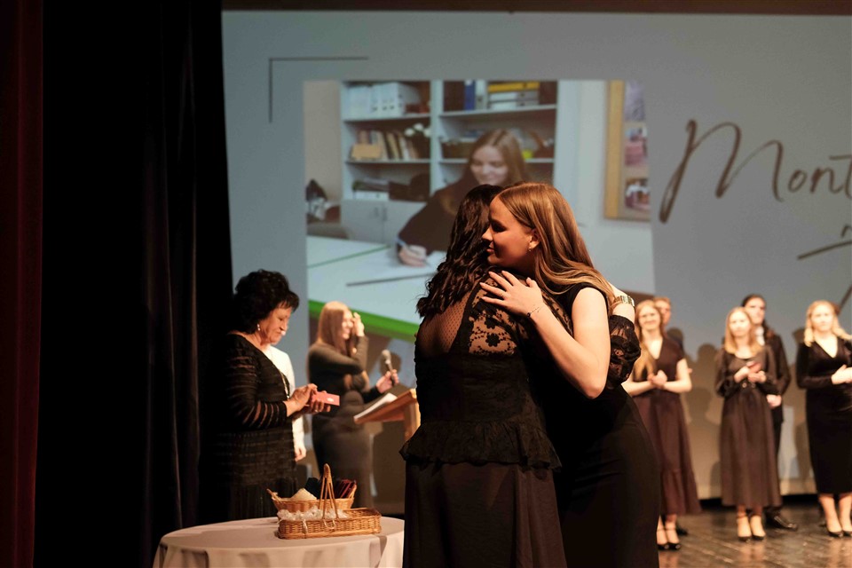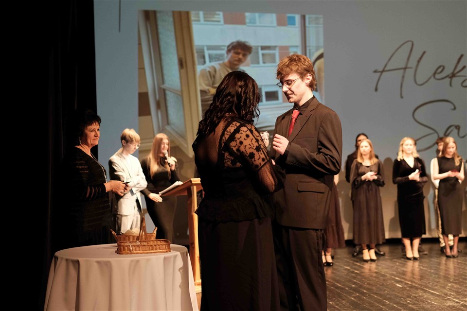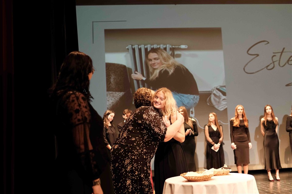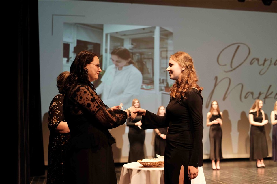“Jaunieši, jūs esat dažādi, un tādus esmu jūs iepazinusi. Es jūs visus mīlu tieši jūsu dažādībā – no spožiem rezultātiem konkursos, sacensībās un olimpiādēs līdz asarām par kādu neveiksmi, kā arī sarunām manā kabinetā, uzklausot jūsu idejas, ierosinājumus,” uzrunā žetonu vakarā teica U. Grencione – Lapseniete.