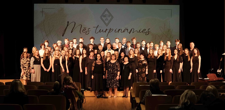 Žetonu vakara nosaukums “Mēs turpināmies” jeb vakara tituldziesma ir no muzikālās apvienības “Sudden Lights” repertuāra. Grupa ģimnāzistiem īpaša, jo tajā basģitāru spēlē novadnieks Kārlis Vārtiņš. “Dziesmā ir vārdi: “Mēs turpinām iet” – lai kas notiktu ar katru no mums, mēs turpinām iet. Jaunieši, neapstājieties pie sasniegtā, neizvairieties no neveiksmēm, bet esiet rīcības cilvēki un atrodiet risinājumu jebkurā situācijā!” novēl direktore.