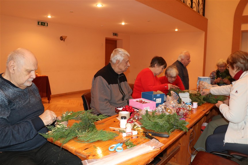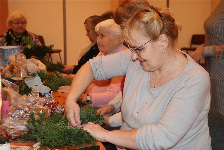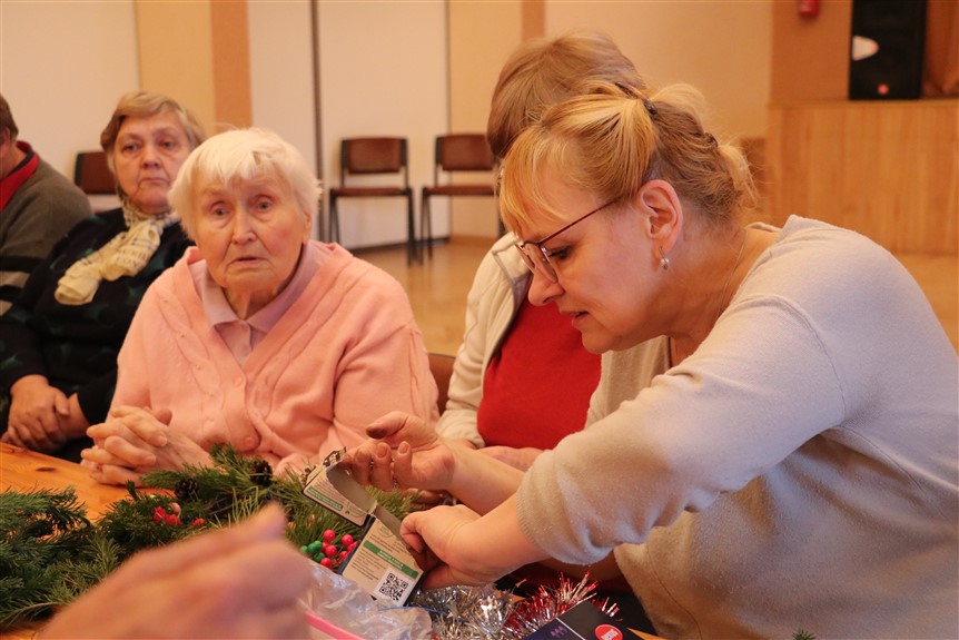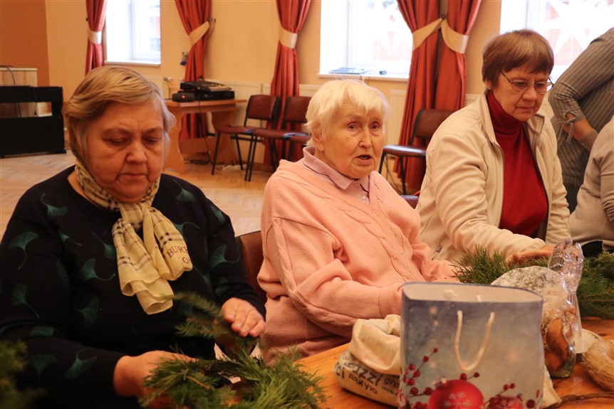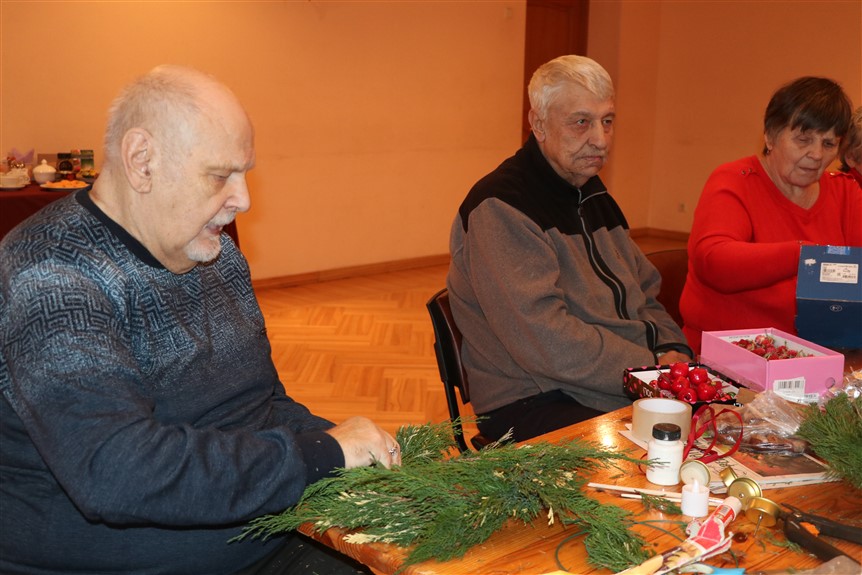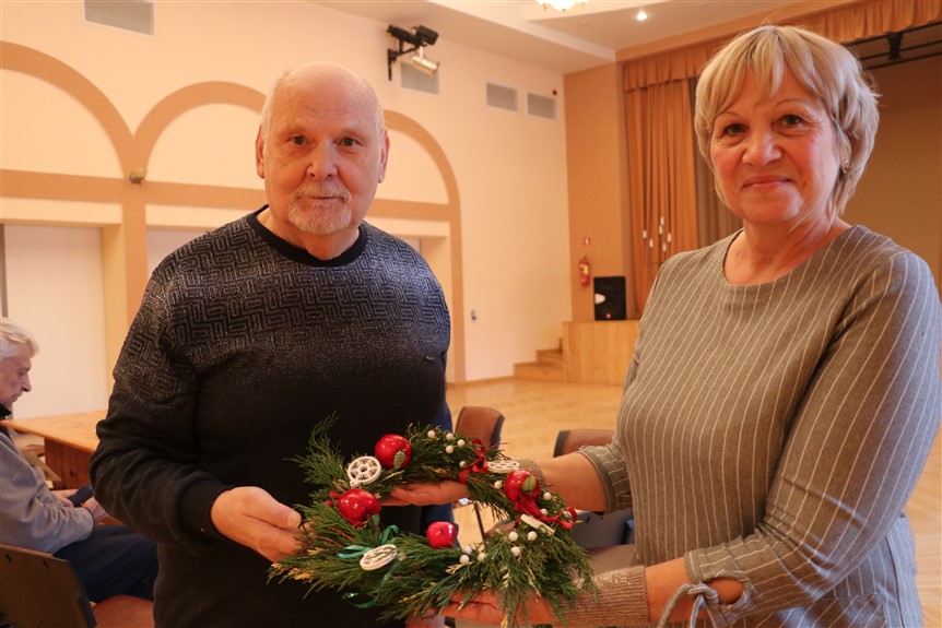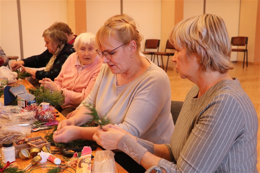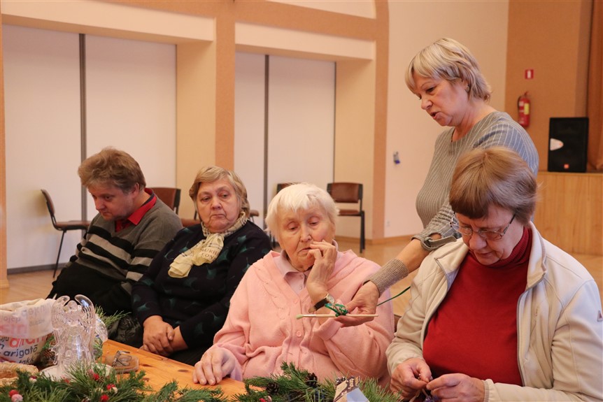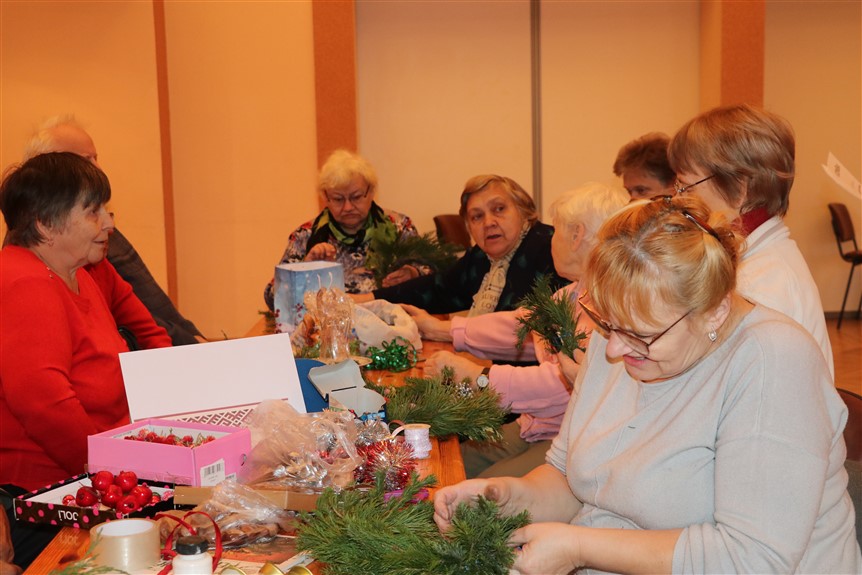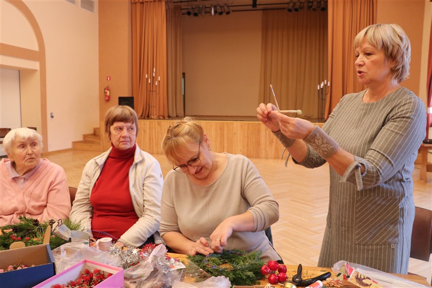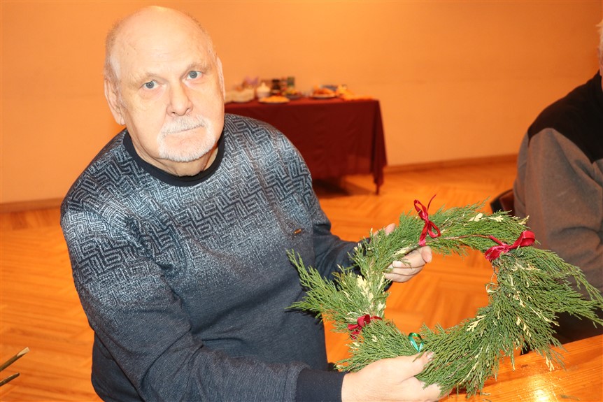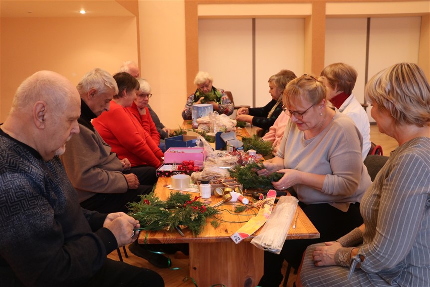 Trešdien kopā sanāca Ziemera pagasta senioru kopas “Vietējie” dalībnieki, lai Jāņa Bērtiņa vadībā veidotu vienu no Ziemassvētku dekoriem – vainagu. Pagasta seniori tiekas divas reizes mēnesī un kā stāsta vadītājas vietniece Lolita Zvirgzda, nākošā tikšanās būs 20.decembrī, kad visi kopā dosies uz Ziemassvētku ieskaņu pēcpusdienu “Ceļā uz…” Alsviķu kultūras namā.